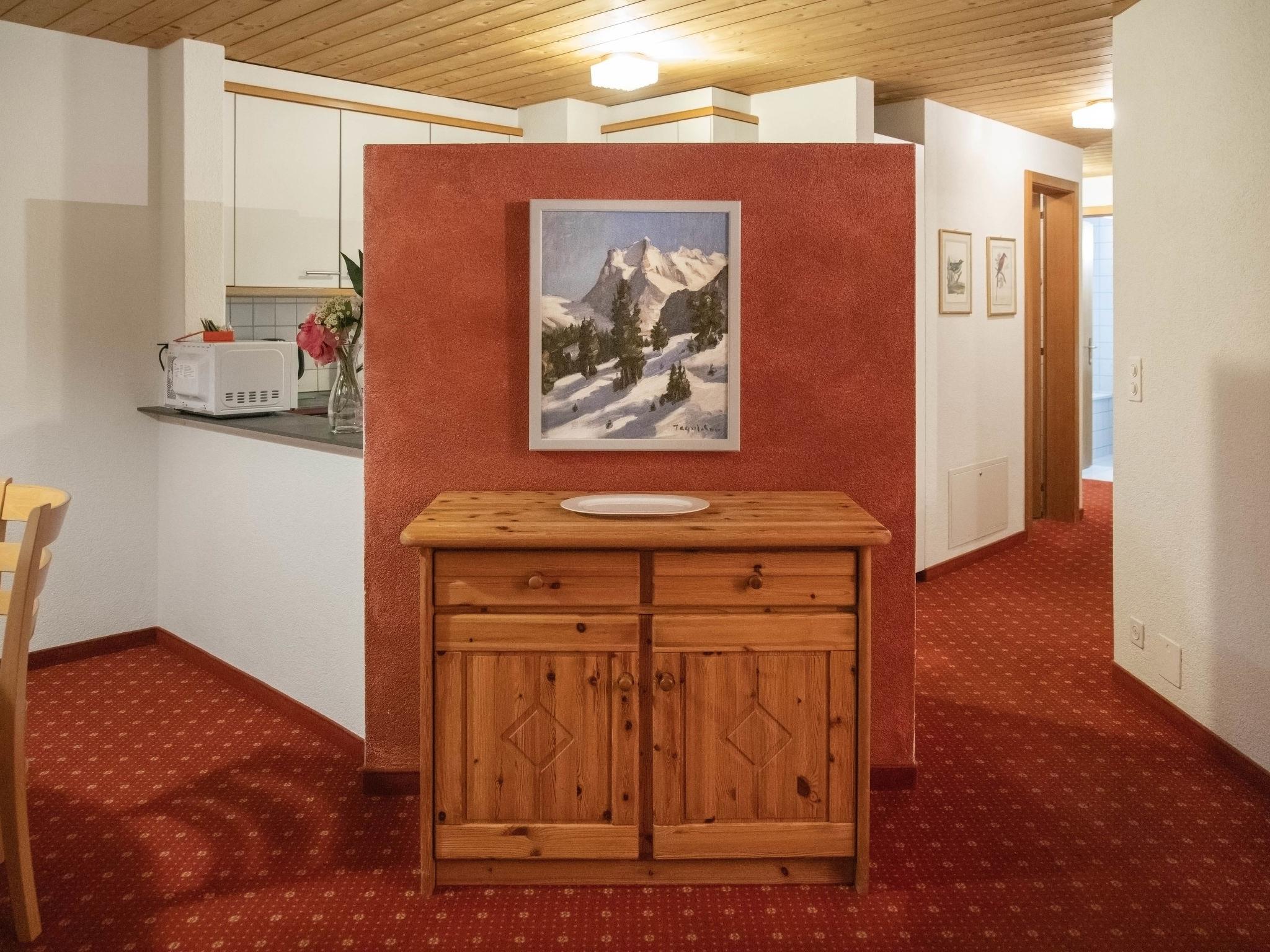 3-room apartment 71 m2 on 2nd floor, south-east facing position. Living/dining room with cable TV (flat screen). 2 double bedrooms. Kitchen (oven, dishwasher, 4 ceramic glass hob hotplates, toaster, kettle, electric coffee machine, Capsules for coffee machine (Nespresso) extra). Bath/WC, sep. WC. Floor heating. Balcony, south facing position, large terrace, east facing position. Terrace furniture. View of the mountains and Eiger. Facilities: hair dryer. Internet (WiFi, free). Please note: non-smokers only. Maximum 1 pet/ dog allowed. A fondue set (meat or cheese) and a raclette oven can be borrowed from reception.
