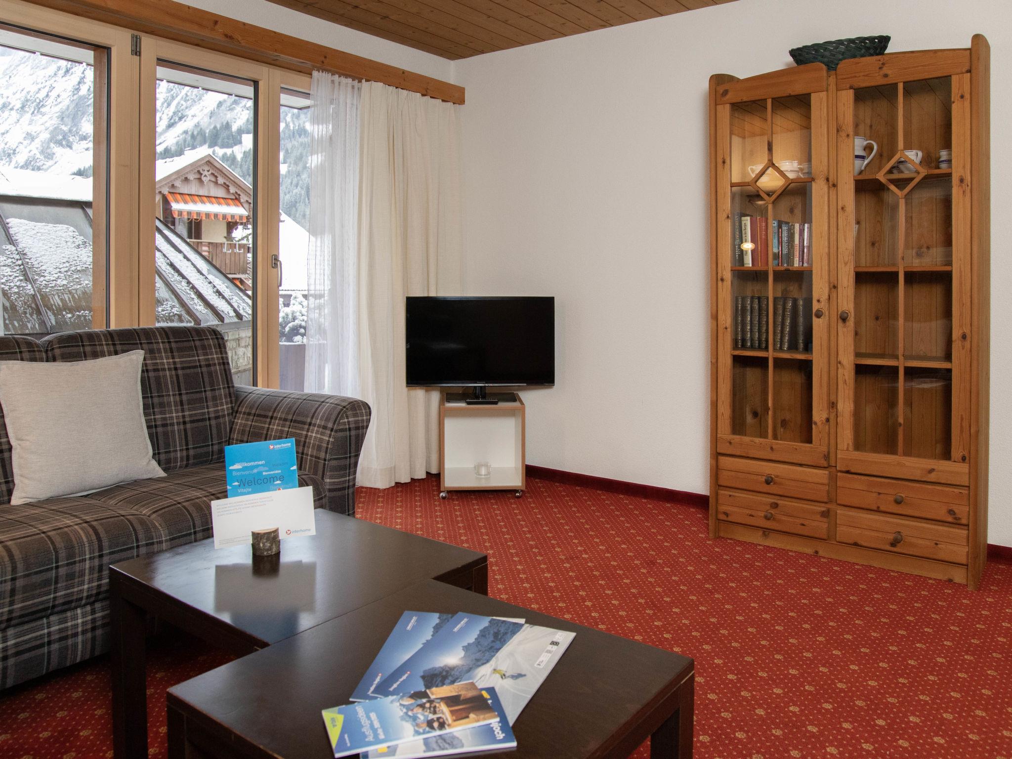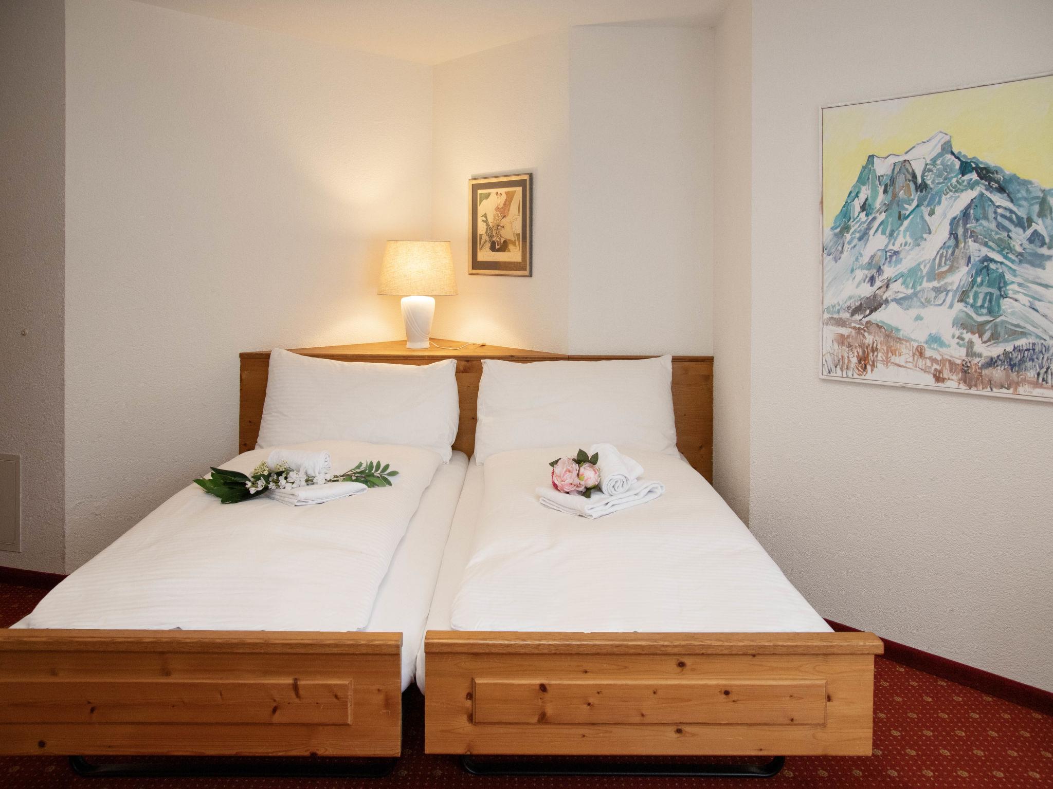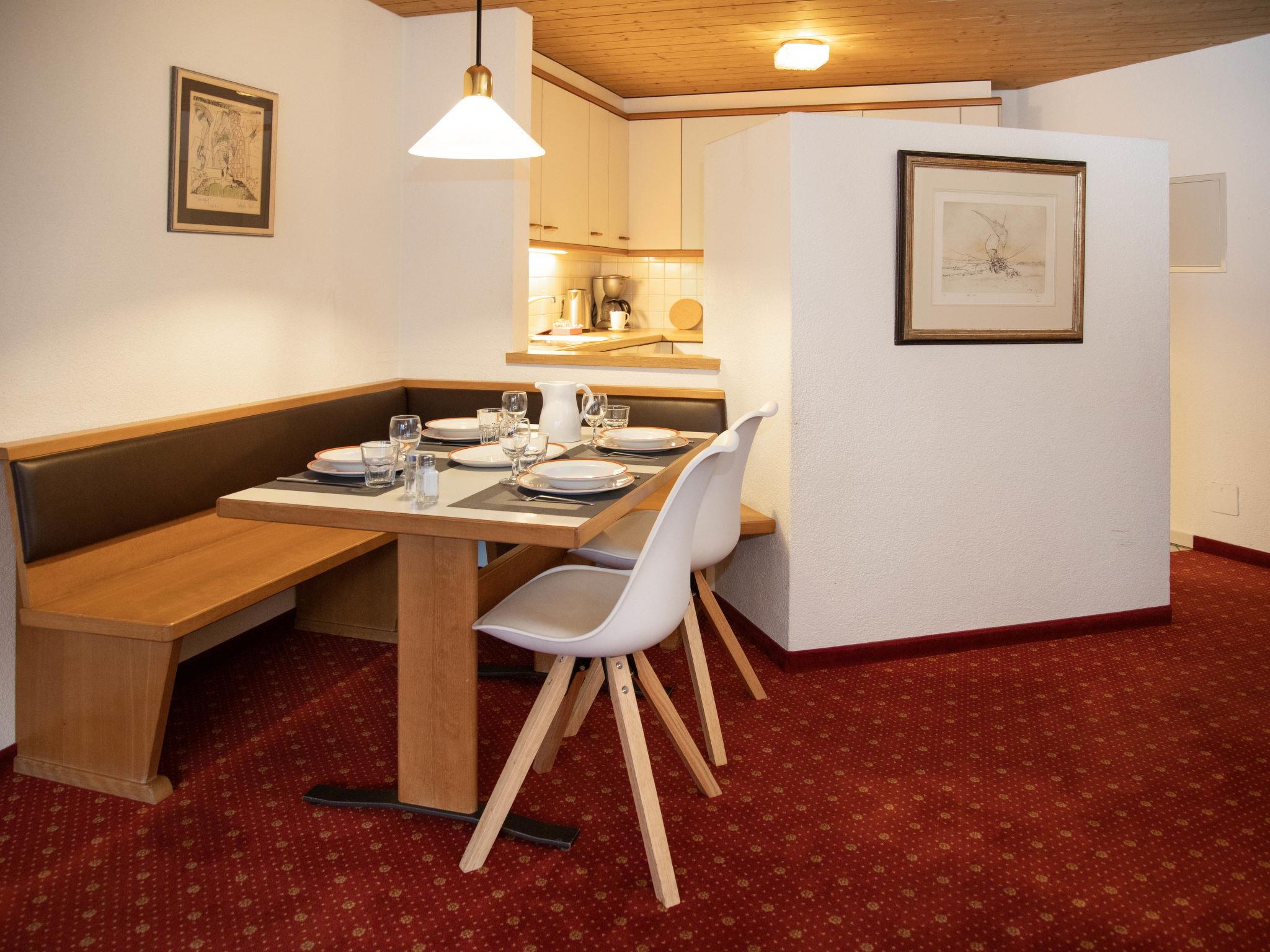 3-room apartment 64 m2 on 2nd floor, east facing position. Living/dining room with cable TV (flat screen). 2 double bedrooms. Kitchen (oven, dishwasher, 4 ceramic glass hob hotplates, toaster, kettle, electric coffee machine, Capsules for coffee machine (Nespresso) extra). Bath/WC, sep. WC. Floor heating. Terrace, east facing position. Terrace furniture. View of the mountains. Facilities: hair dryer. Internet (WiFi, free). Please note: non-smokers only. Maximum 1 pet/ dog allowed. A fondue set (meat or cheese) and a raclette oven can be borrowed from reception.