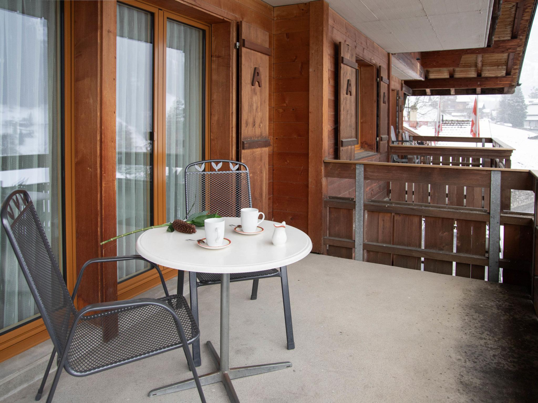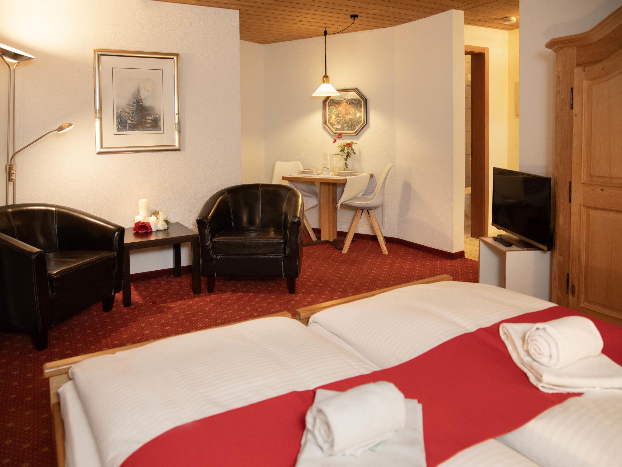 1-room apartment 26 m2 on 3rd floor, south-west facing position. Living/sleeping room with 2 beds and cable TV (flat screen). Kitchen (oven, 4 ceramic glass hob hotplates, toaster, kettle, electric coffee machine). Bath/WC. Floor heating. Balcony. Terrace furniture. Beautiful view of the mountains and Eiger. Facilities: hair dryer. Internet (WiFi, free). Please note: non-smokers only. Maximum 1 pet/ dog allowed. A fondue set (meat or cheese) and a raclette oven can be borrowed from reception.