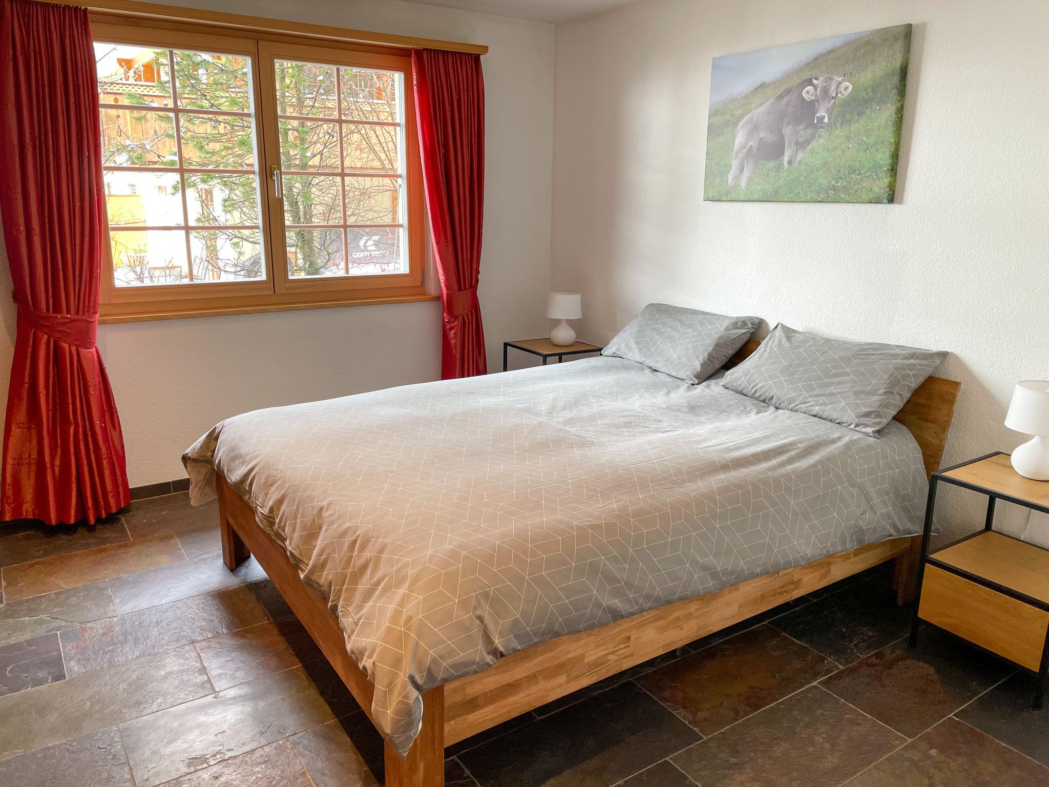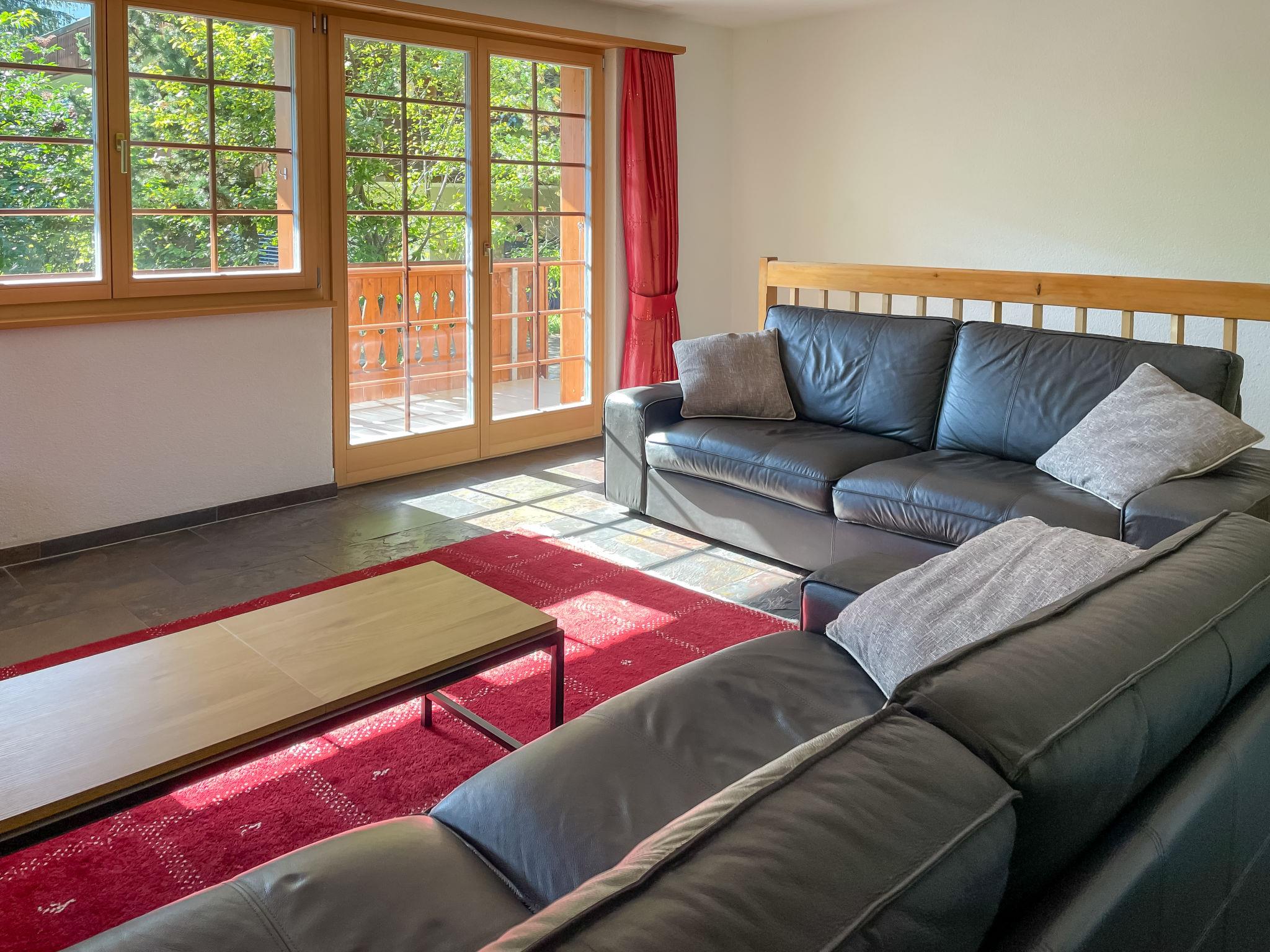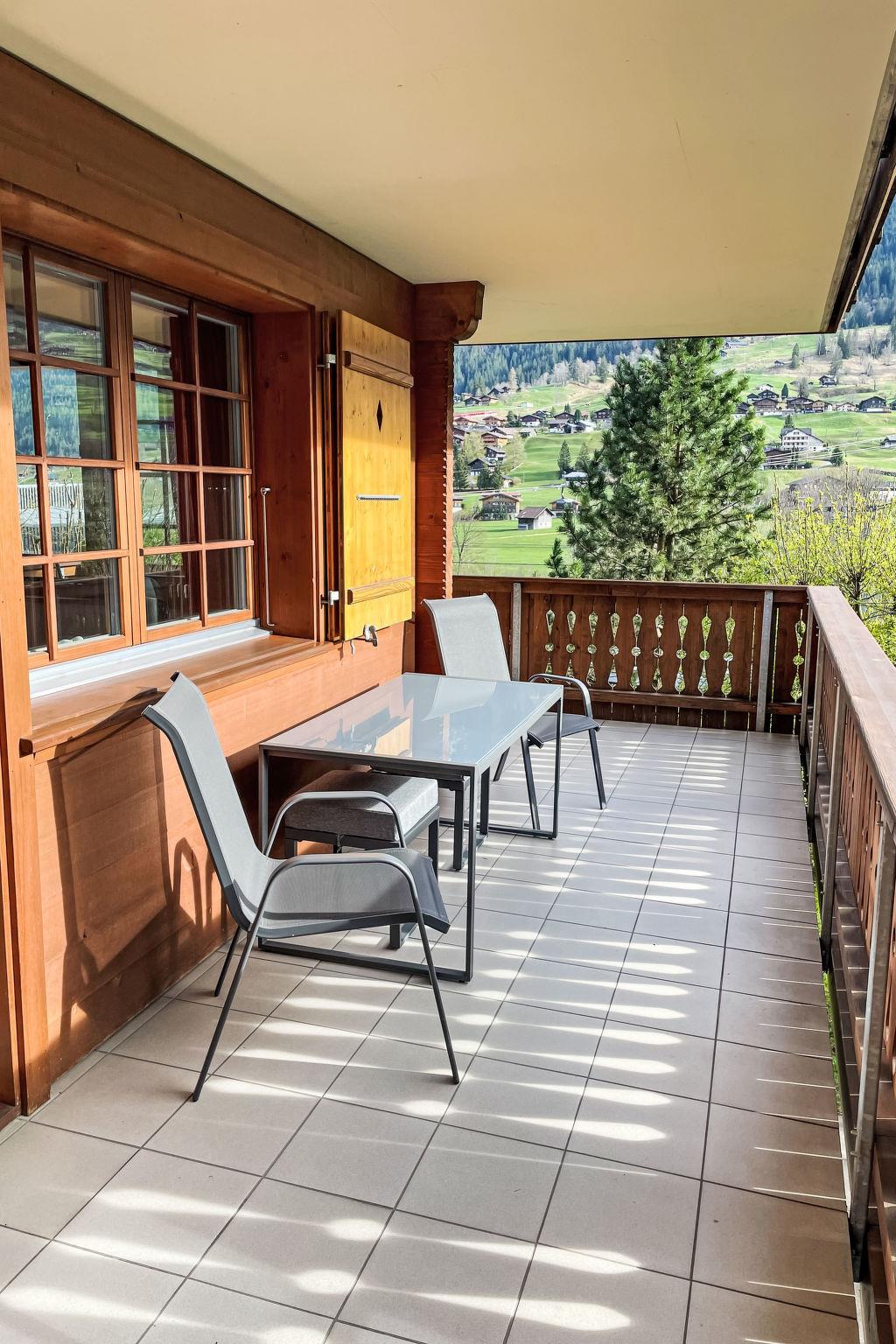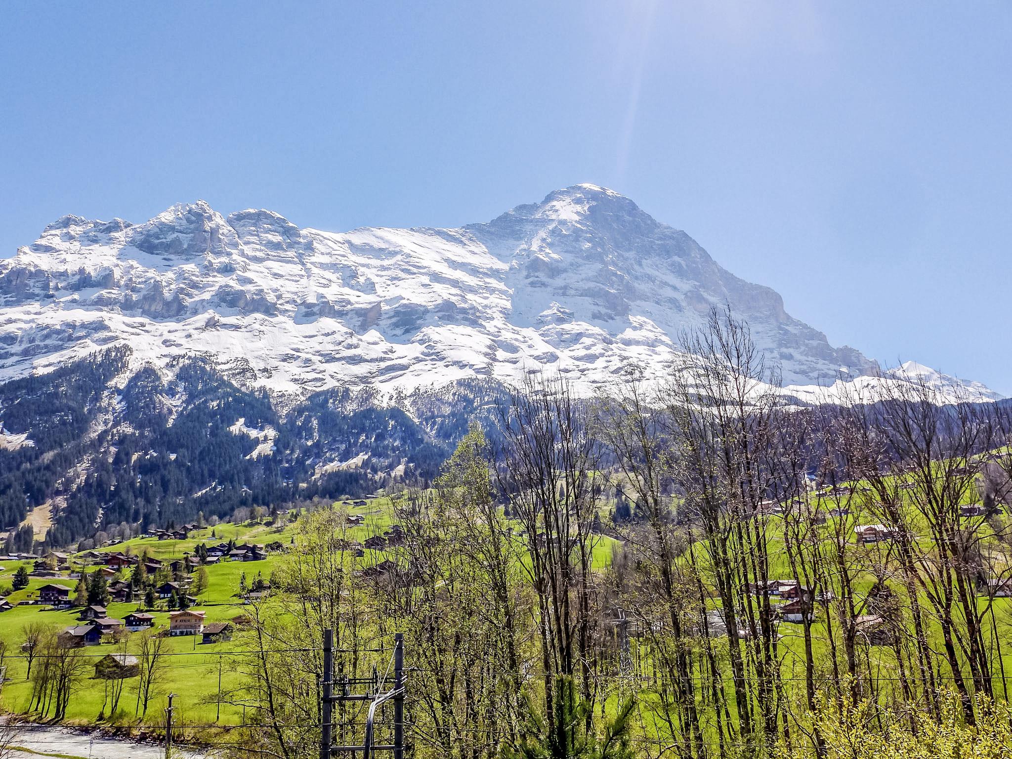 4-room apartment 113 m2 on 2 levels, on the ground floor, south facing position. Modern and cosy furnishings: living/dining room with cable TV (flat screen), radio, CD-player and DVD. Exit to the balcony, south facing position and west facing position. 1 room with 1 french bed (160 cm, length 200 cm). Open kitchen (oven, dishwasher, 4 ceramic glass hob hotplates, toaster, kettle, microwave, electric coffee machine, Capsules for coffee machine (Nespresso) extra, raclette grill, fondue Set (cheese)). Shower/WC. Floor heating. On the lower ground floor: 1 room with 2 beds (90 cm, length 200 cm). Exit to the terrace, south facing position and west facing position. 1 room with 1 french bed (160 cm, length 200 cm). Exit to the terrace, south facing position and west facing position. Bath/WC. Parquet floors, natural stone floors. Balcony, south facing position and west facing position, south facing position and west facing position, lawn. Balcony furniture. Marvellous view of the mountains and Eiger. Facilities: washing machine, dryer, hair dryer. Internet (WiFi, free). Parking space n 7 Bedford (roofed, 1 car) at the house. Please note: non-smokers only. Fire extinguisher.