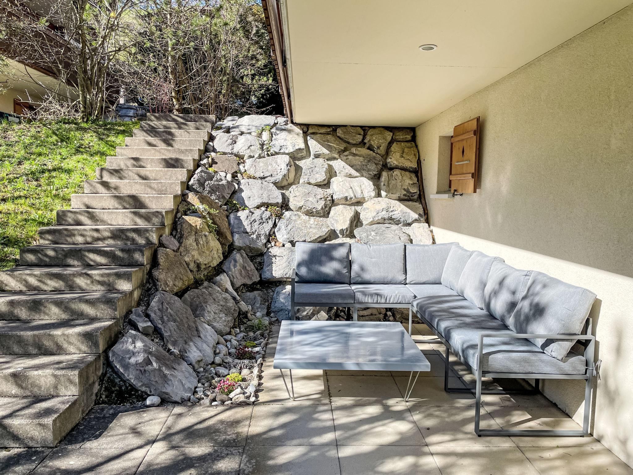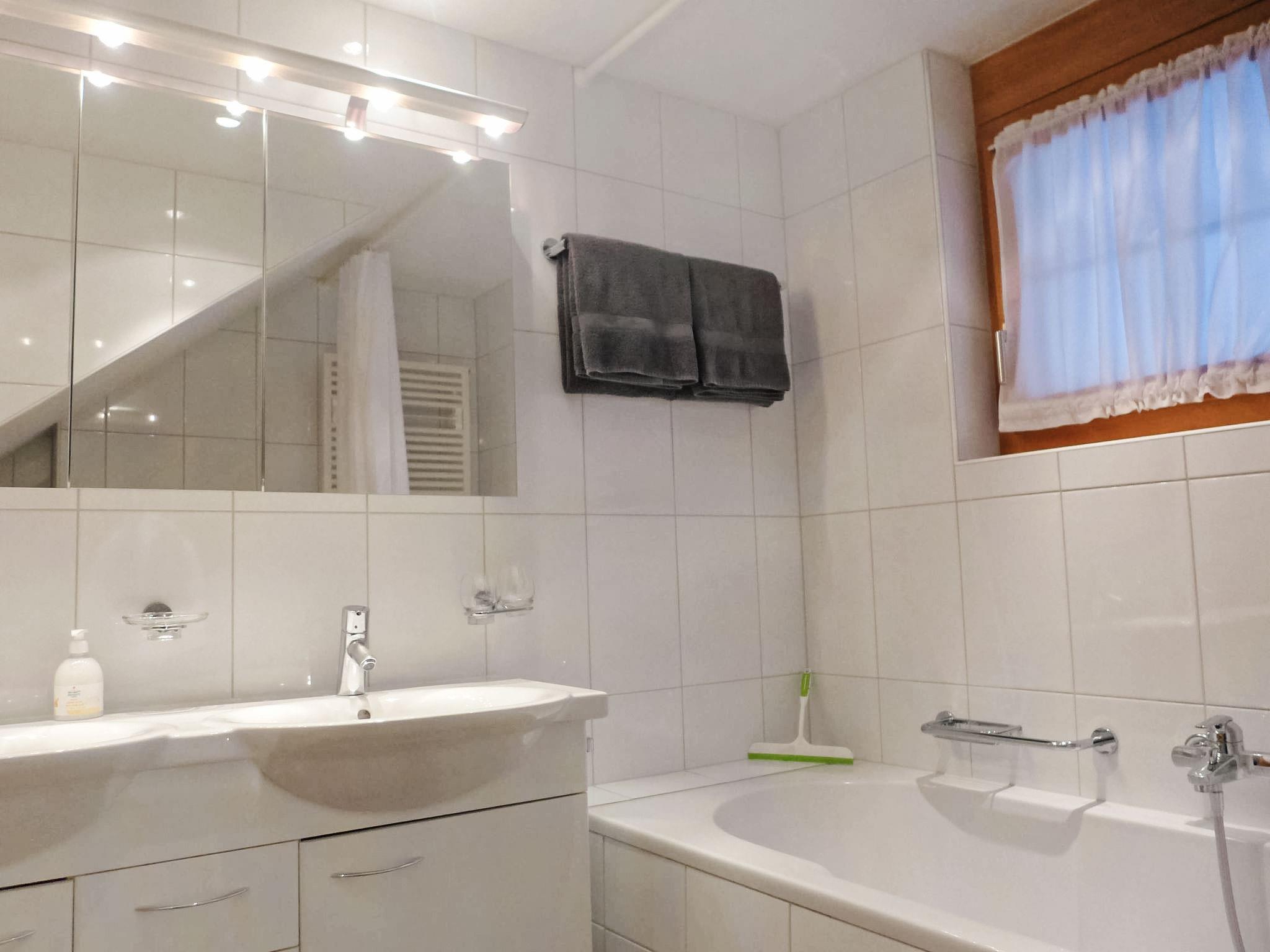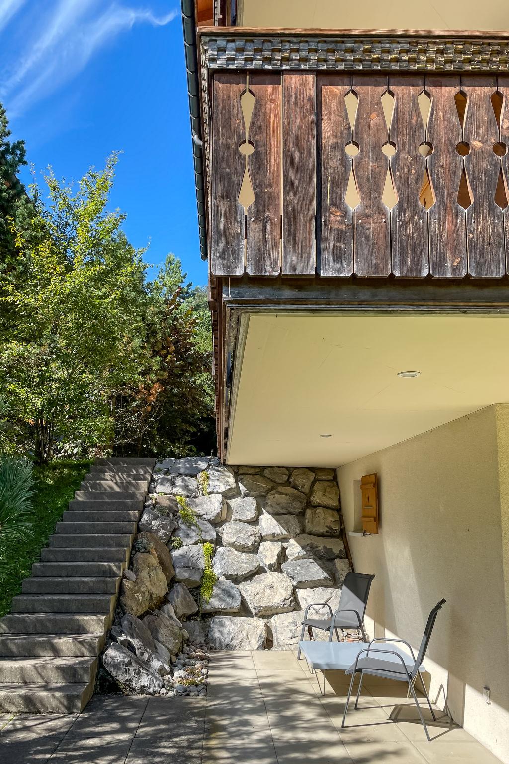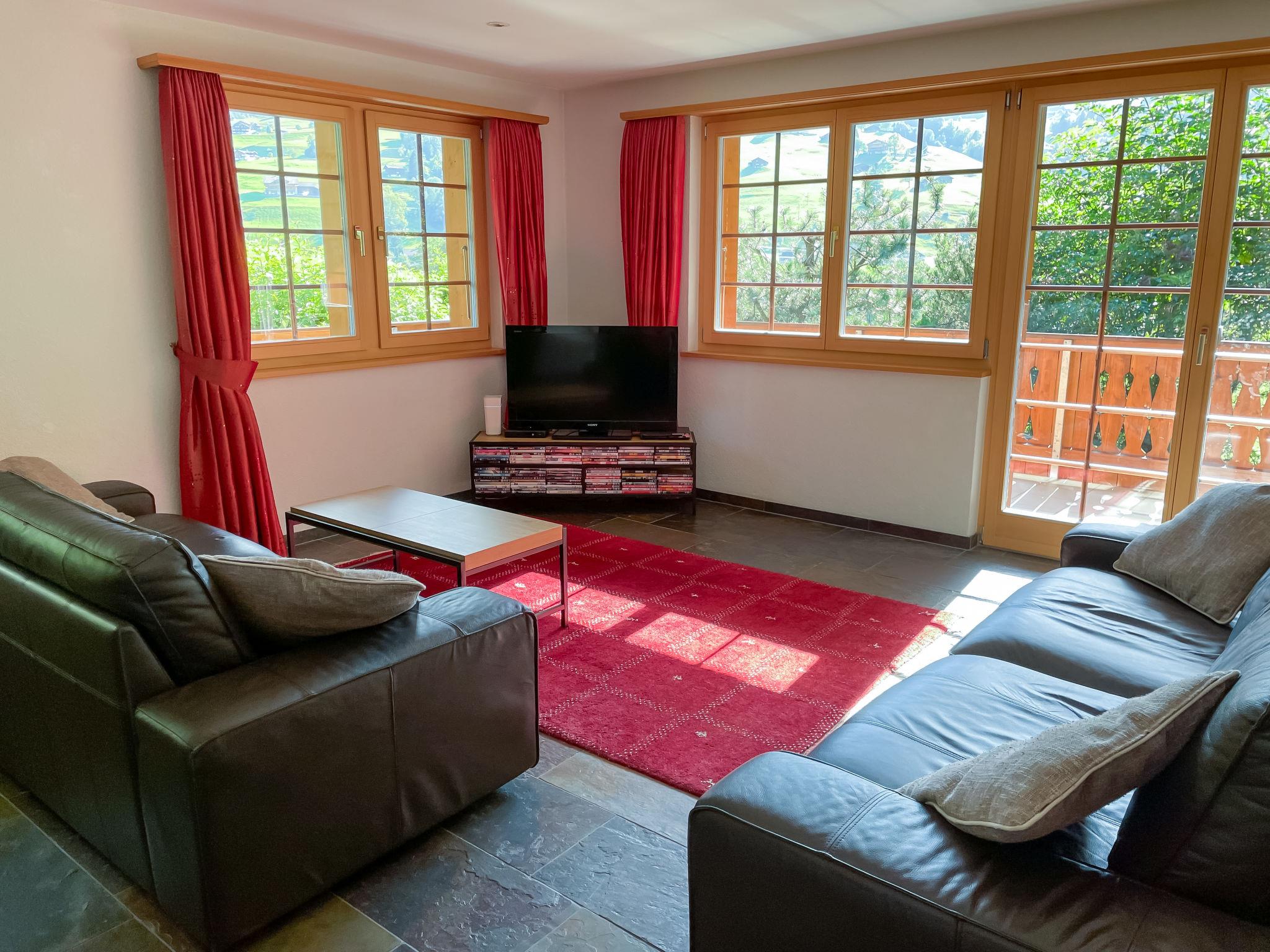 4-room apartment 113 m2 on 2 levels, on the ground floor, south facing position. Modern and cosy furnishings: living/dining room with cable TV (flat screen), radio, CD-player and DVD. Exit to the balcony, south facing position and west facing position. 1 room with 1 french bed (160 cm, length 200 cm). Open kitchen (oven, dishwasher, 4 ceramic glass hob hotplates, toaster, kettle, microwave, electric coffee machine, Capsules for coffee machine (Nespresso) extra, raclette grill, fondue Set (cheese)). Shower/WC. Floor heating. On the lower ground floor: 1 room with 2 beds (90 cm, length 200 cm). Exit to the terrace, south facing position and west facing position. 1 room with 1 french bed (160 cm, length 200 cm). Exit to the terrace, south facing position and west facing position. Bath/WC. Parquet floors, natural stone floors. Balcony, south facing position and west facing position, south facing position and west facing position, lawn. Balcony furniture. Marvellous view of the mountains and Eiger. Facilities: washing machine, dryer, hair dryer. Internet (WiFi, free). Parking space n 7 Bedford (roofed, 1 car) at the house. Please note: non-smokers only. Fire extinguisher.
