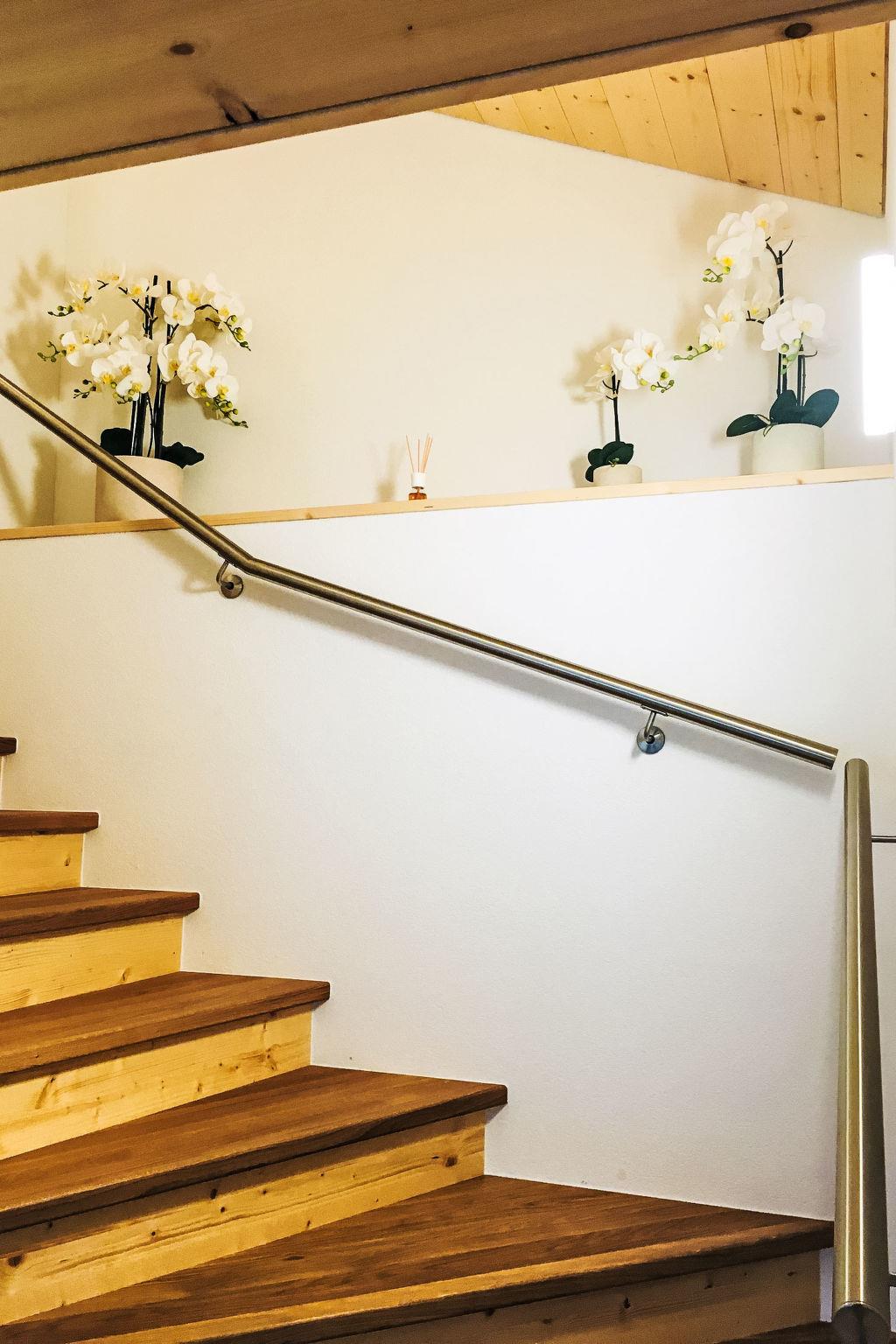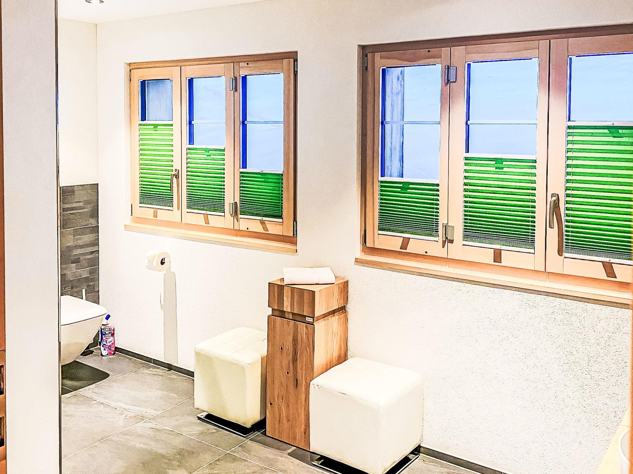 3-room apartment 100 m2 on 2 levels, south facing position. Spacious, fully renovated in 2023, comfortable and cosy furnishings: open living/dining room, ceiling height 200 cm with dining table, TV and international TV channels. Exit to the patio. Open kitchen (oven, dishwasher, 4 ceramic glass hob hotplates, toaster, kettle, electric coffee machine, Capsules for coffee machine (Nespresso) extra, raclette grill, fondue Set (cheese)). Shower/WC. Upper floor: 2 rooms with sloping ceilings, Low door height 190 cm ceiling height 60 - 200 cm, each room with 1 bed (180 cm, length 200 cm). Marvellous view of the mountains and the countryside. Facilities: washing machine, dryer, hair dryer. Internet (WiFi, free). Parking at the house. Please note: non-smokers only. Private entrance, fire extinguisher.
