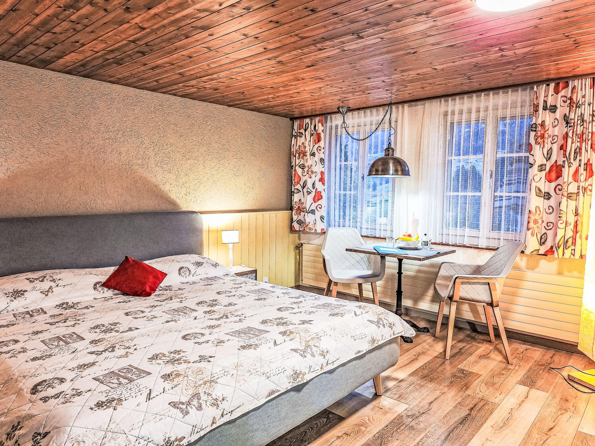1-room apartment 30 m2, on the ground floor, south facing position. Beautiful and cosy furnishings: living/sleeping room with 1 double bed (2 x 90 cm, length 200 cm), international TV channels. Exit to the patio. Kitchenette (2 hot plates, oven, toaster, kettle, electric coffee machine, Capsules for coffee machine (Nespresso) extra). Shower/WC. Parquet floors. Terrace 7 m2, south facing position. Terrace furniture. Marvellous view of the mountains, the valley and Eigernordwand, Schynige Platte. Facilities: hair dryer. Internet (WiFi, free). Parking at 30 m. Please note: non-smokers only. Maximum 1 pet/ dog allowed. Fire extinguisher.