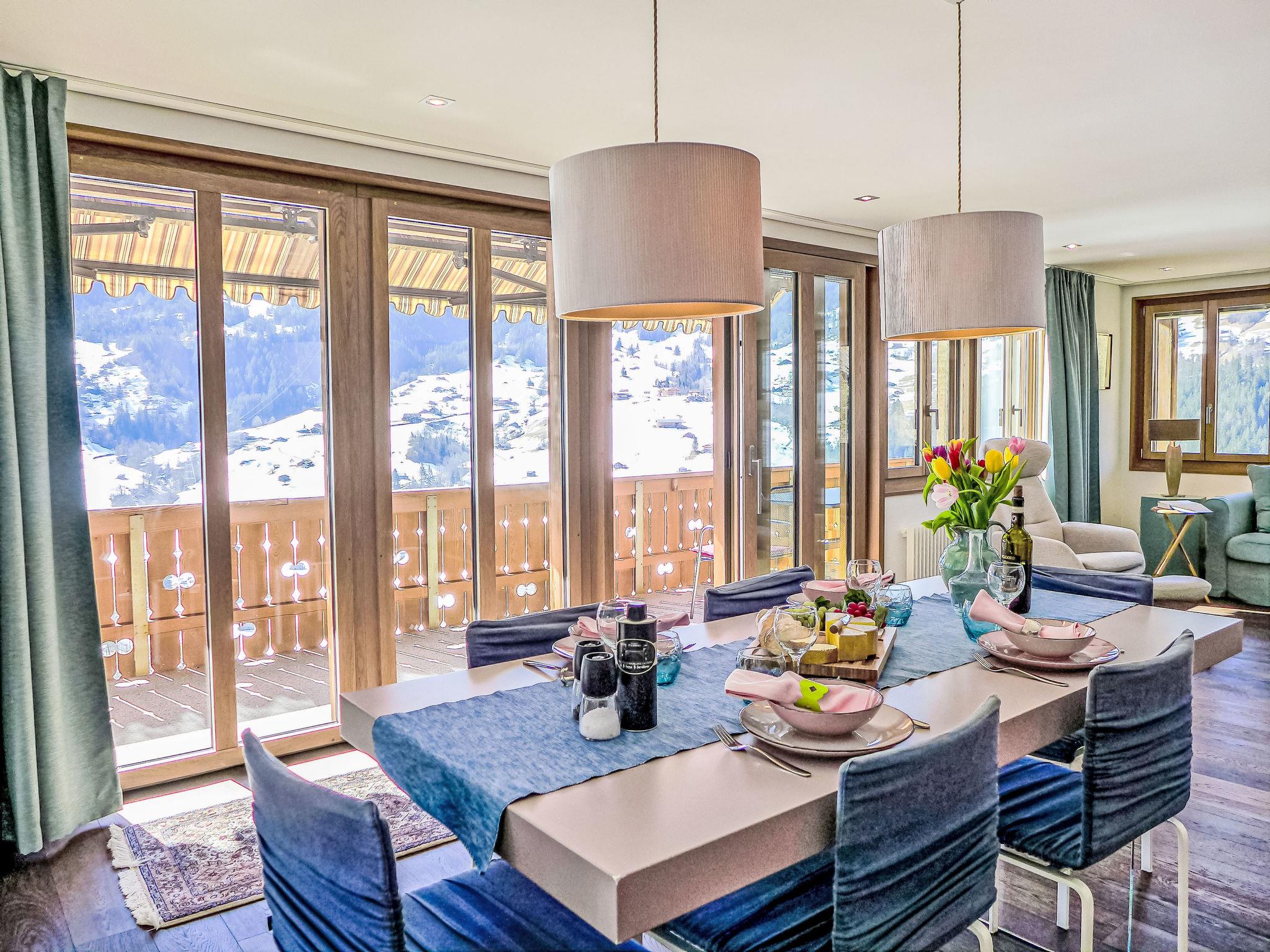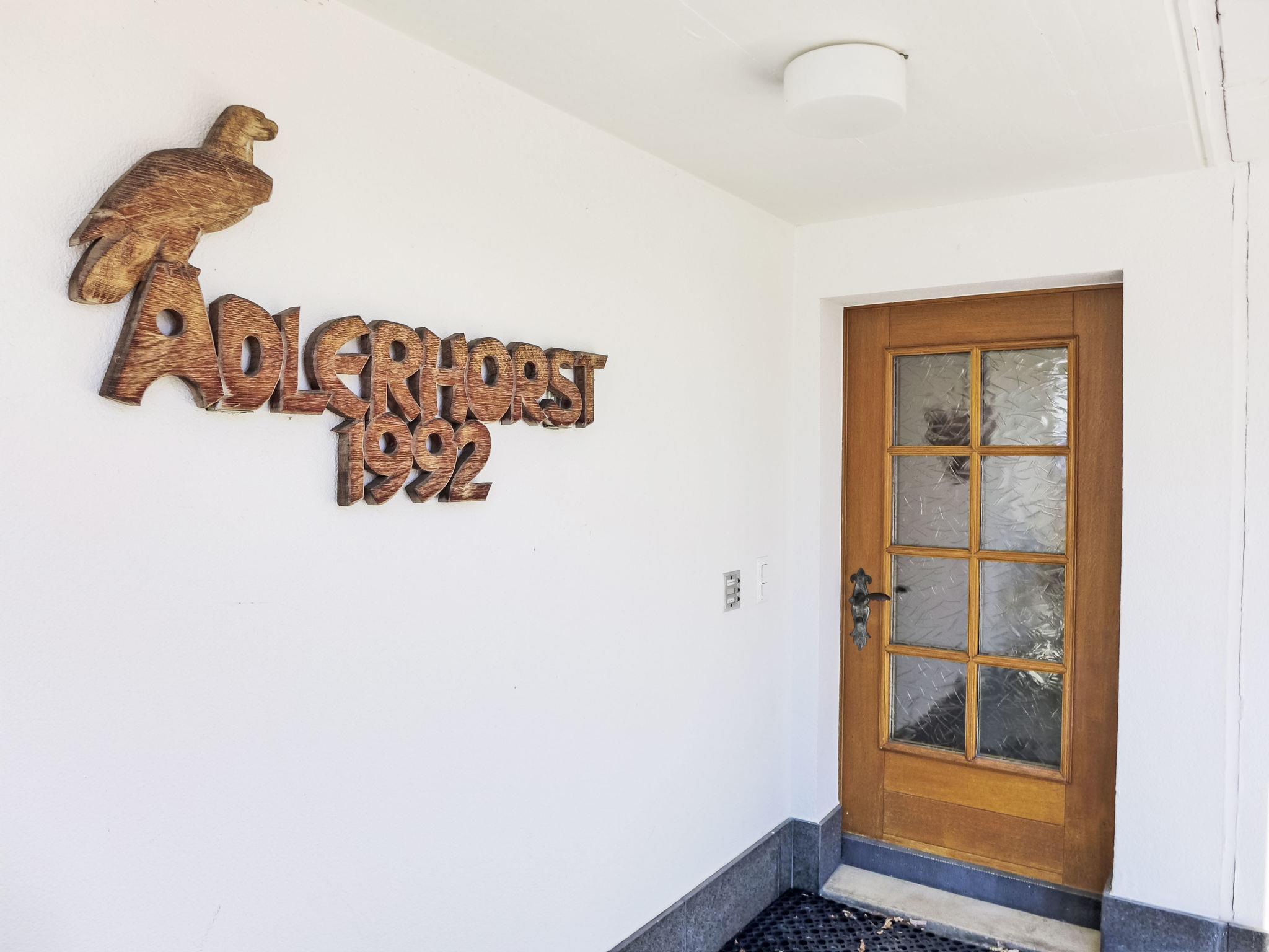 "Chalet Adlerhorst OG", 3-room apartment 122 m2 on 1st floor, south facing position. Spacious and bright, very comfortable and tasteful furnishings: open large living/dining room with panoramic window with dining table and cable TV (flat screen). Exit to the balcony. 2 double bedrooms, each room with 1 double bed (160 cm, length 200 cm), shower/WC. Exit to the balcony. Large, open kitchen (oven, dishwasher, 4 induction hot plates, toaster, kettle, microwave, electric coffee machine, Capsules for coffee machine (Dolce Gusto) extra, fondue Set (cheese)). Parquet floors. Large balcony, south facing position. Balcony furniture. Marvellous panoramic view of the mountains and the resort. Facilities: washing machine, dryer, iron, children's high chair, baby cot for up to 2 year olds (extra), hair dryer. Internet (WiFi, free). Parking (1 car) at the house. Please note: non-smokers only. Smoke alarm, fire extinguisher.