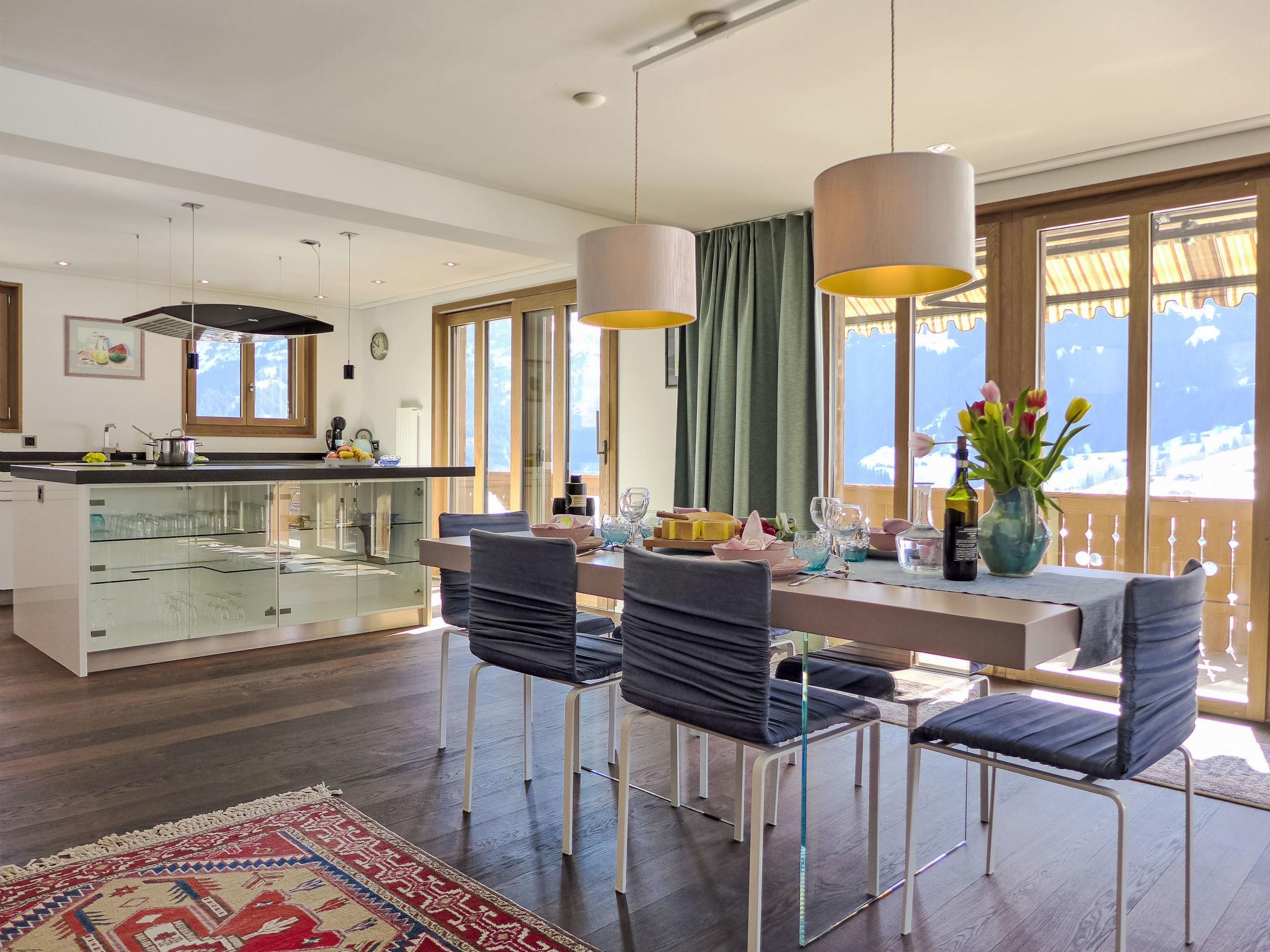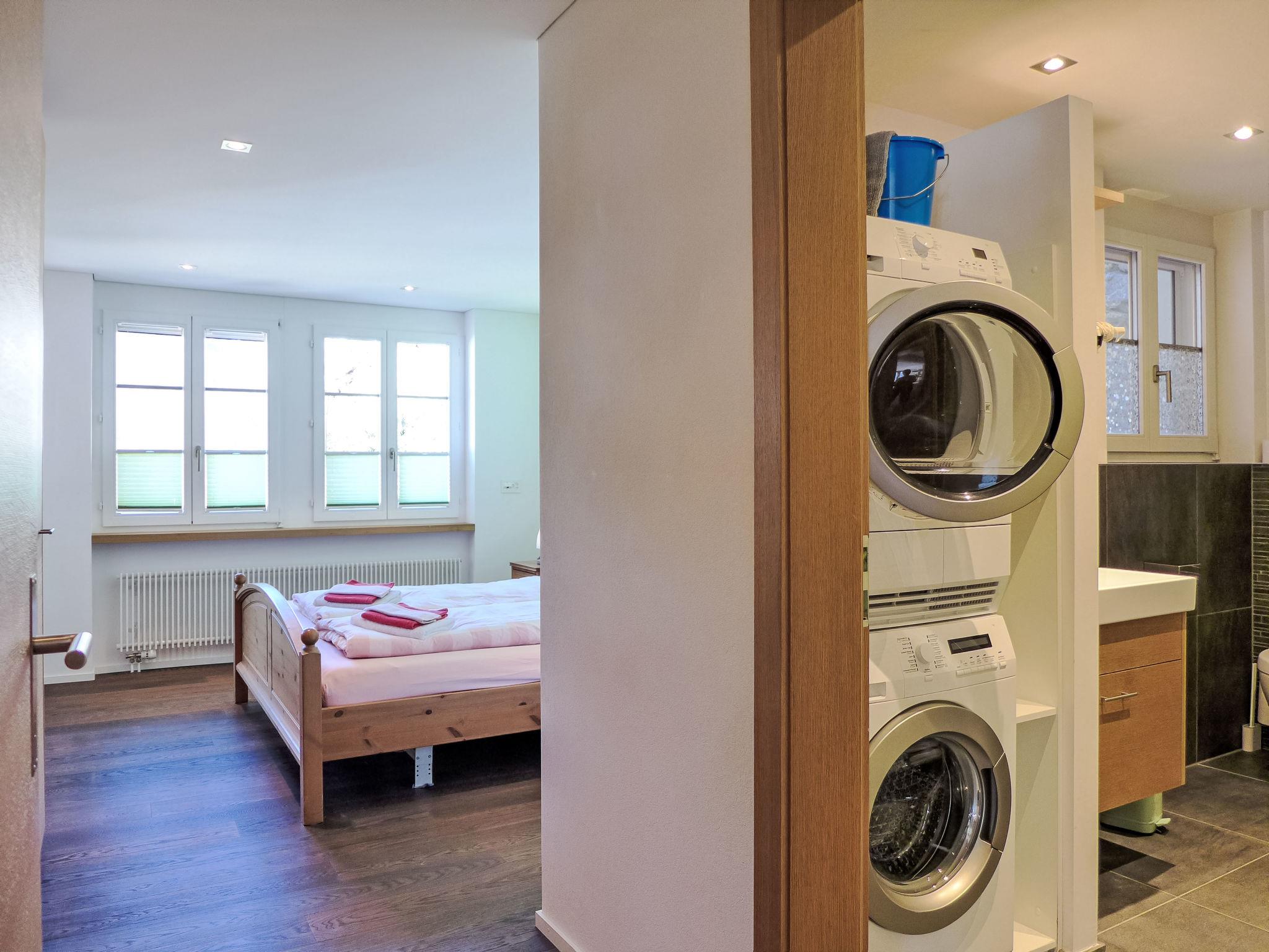 Modern, very comfortable apartment house "Chalet Adlerhorst", 3 storeys. In the district of Herrschaft, 1.4 km from the centre, in a quiet, sunny position on a slope. In the house: storage room for skis, central heating system, washing machine, tumble dryer (for shared use). Motor access to the house. In Winter: please take snow chains. Parking at the house. Shop 1.4 km, grocery 1.4 km, supermarket 1.4 km, 20 minute walk to the centre, bus stop "Stein" 270 m, railway station "Grindelwald Dorf" 1.4 km, outdoor swimming pool 2.8 km, indoor swimming pool 1.6 km. Golf course (9 hole) 4 km, cable car 2 km, skisport facilities 3 km, ski bus stop 270 m, children's ski school 2.2 km. Well-known lakes can easily be reached: Thuner-/Brienzersee. Please note: car recommended. Additional accommodations can be booked.