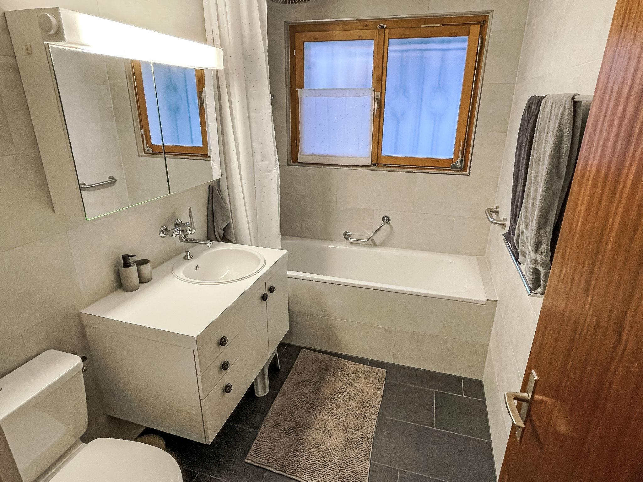 Apartment house "Casa Almis 2". In the district of Almis, 300 m from the centre, excellent location: right in the centre but still quiet, south facing position. In the house: storage room for skis, central heating system, washing machine, tumble dryer, drying room. In Winter: please take snow chains. Parking at the house, single garage. Shopping centre 300 m, restaurant, bar 200 m, bakery 400 m, bus stop "Firstbahn" 250 m, railway station "Grindelwald Dorf" 800 m, indoor swimming pool 700 m. Golf course (6 hole) 2 km, tennis 1.5 km, minigolf 500 m, sports centre 700 m, gondola lift 300 m, ski rental, ski bus stop 250 m, cross country ski track 1.5 km. Well-known ski regions can easily be reached: First, 250 m, kl. Scheidegg/Männlichen 3 km. Well-known lakes can easily be reached: Thuner-/Brienzersee 18 km. Please note: no lift. Suitable for families. Ski bus (free of charge). Free ski bus service to the ski region kl. Scheidegg/Männlichen. The keys‘ handover takes place by the agency Interhome in Grindelwald.