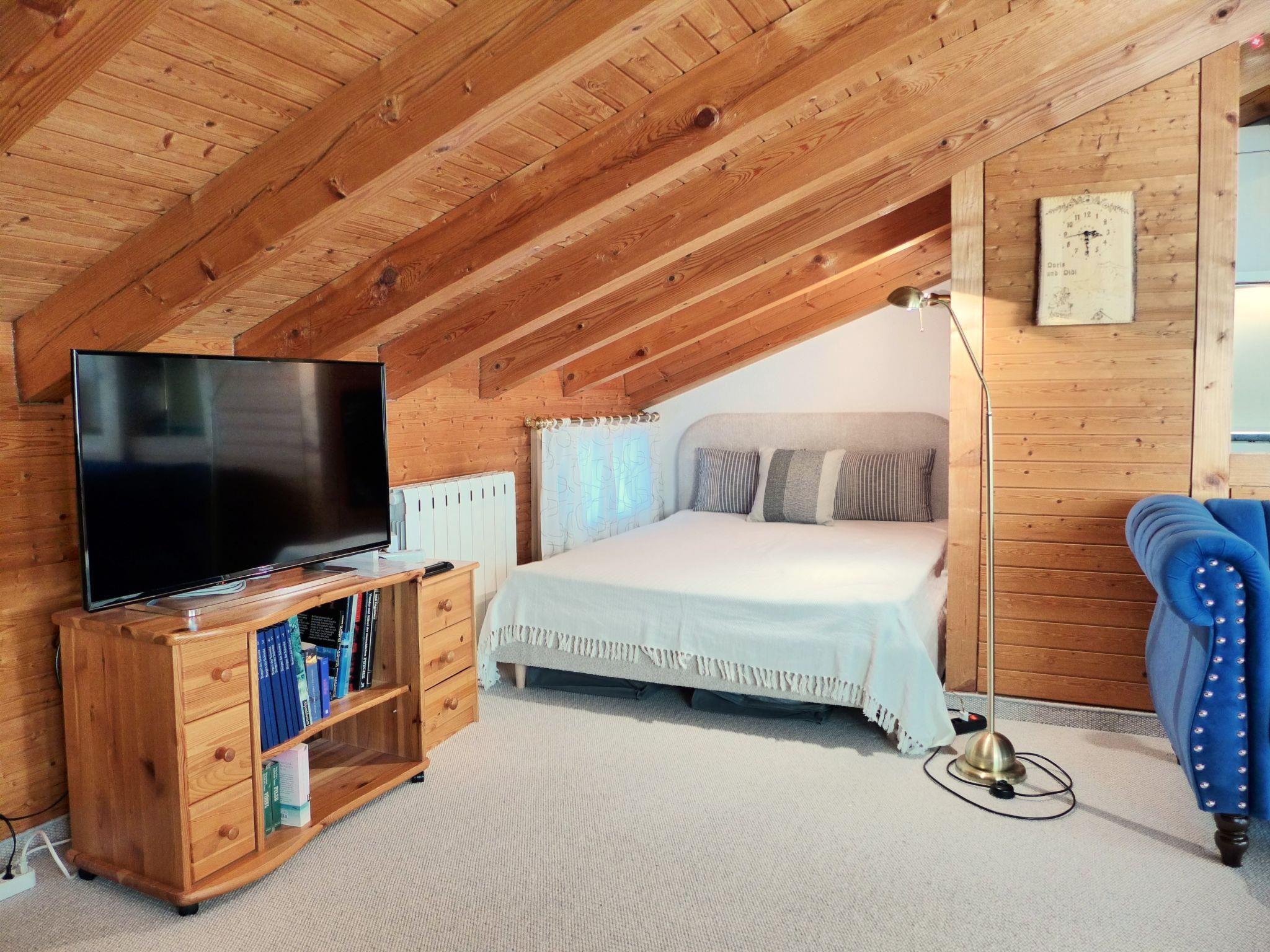 "Chalet Bienli Oben", 3-room apartment on the top floor, south facing position. Object suitable for 4 adults + 2 children. Partly with sloping ceilings, partly renovated in 2024, cosy and wooden furniture furnishings: open living/sleeping room with sloping ceilings with 1 double bed (160 cm, length 200 cm), open-hearth fireplace (only for decoration), dining table and cable TV. Exit to the balcony, south facing position. 1 room with sloping ceilings with 1 double bed (2 x 80 cm, length 200 cm). Exit to the balcony. 1 small children's room with sloping ceilings with 2 beds (90 cm, length 200 cm). Open kitchen (oven, dishwasher, 4 ceramic glass hob hotplates, toaster, kettle, microwave, electric coffee machine, raclette grill, fondue Set (chinoise, cheese)). Bath/WC. Carpet. Large balcony, south facing position. Balcony furniture. Marvellous panoramic view of the mountains. Facilities: hair dryer. Internet (WiFi, free). Parking at 50 m. Please note: non-smokers only. Fire extinguisher.