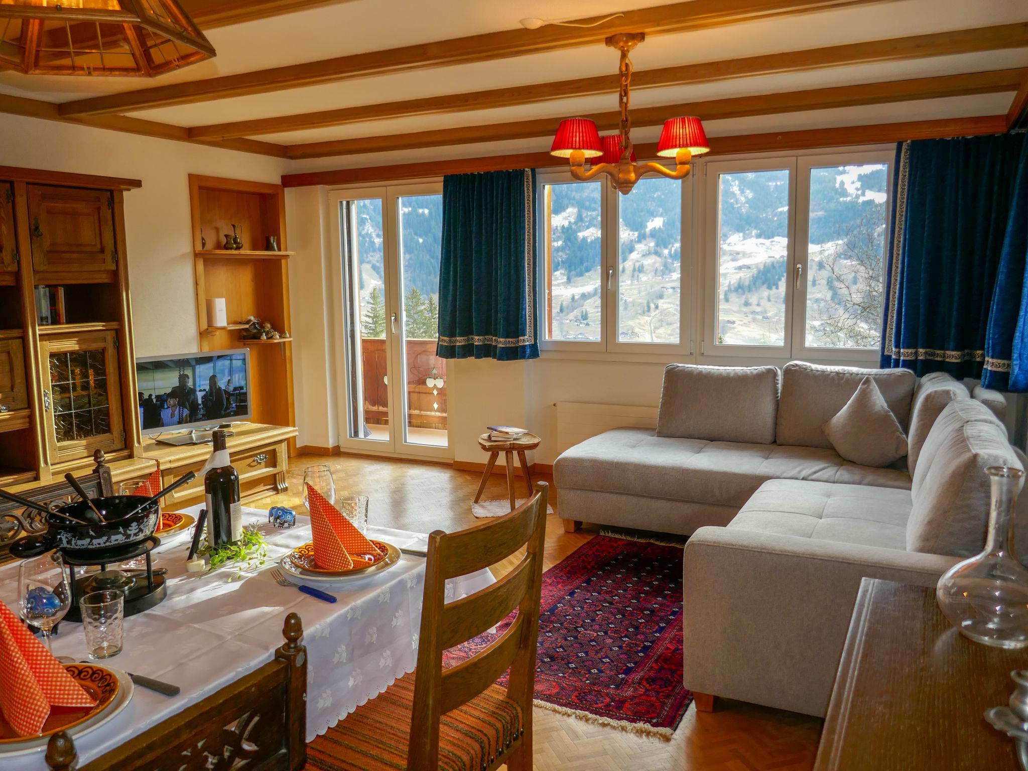 Beautiful, cosy apartment house "Chalet uf Duft". In the district of uf Duft, 1.8 km from the centre, in a secluded, quiet position on a slope, in the countryside. In the house: central heating system. Steep, narrow motor access. In Winter: please take snow chains, 4x4 car recommended in winter. Parking at the house. Grocery 2 km, supermarket 2 km, shopping centre 2 km, restaurant 2 km, bicycle rental 2 km, 25 minute walk to the centre, bus stop "Gaggi Säge" 400 m, railway station "Grindelwald Dorf" 2 km, outdoor swimming pool 3.5 km, indoor swimming pool 2.1 km. Golf course (9 hole) 4.8 km, tennis 4 km, minigolf 2.3 km, sports centre 2.1 km, walking paths from the house 30 m, gondola lift 2.6 km, ski rental 2 km, ski bus stop 300 m, ski school 1.4 km, children's ski school 1.4 km, ice rink 2.1 km, children's playground 2.1 km. Nearby attractions: Jungfrau Top of Europe. Well-known ski regions can easily be reached: Männlichen, Kl.Scheideeg, First. Well-known lakes can easily be reached: Thuner-/Brienzersee 20 km. Hiking paths: Jungfrau Region. Please note: ski bus (free of charge). The keys‘ handover takes place by the agency Int in Grindelwald, 3 km. The owner lives in the same residence. Neighbourhood highly sensitive to noise. Quietness and good behaviour expected.