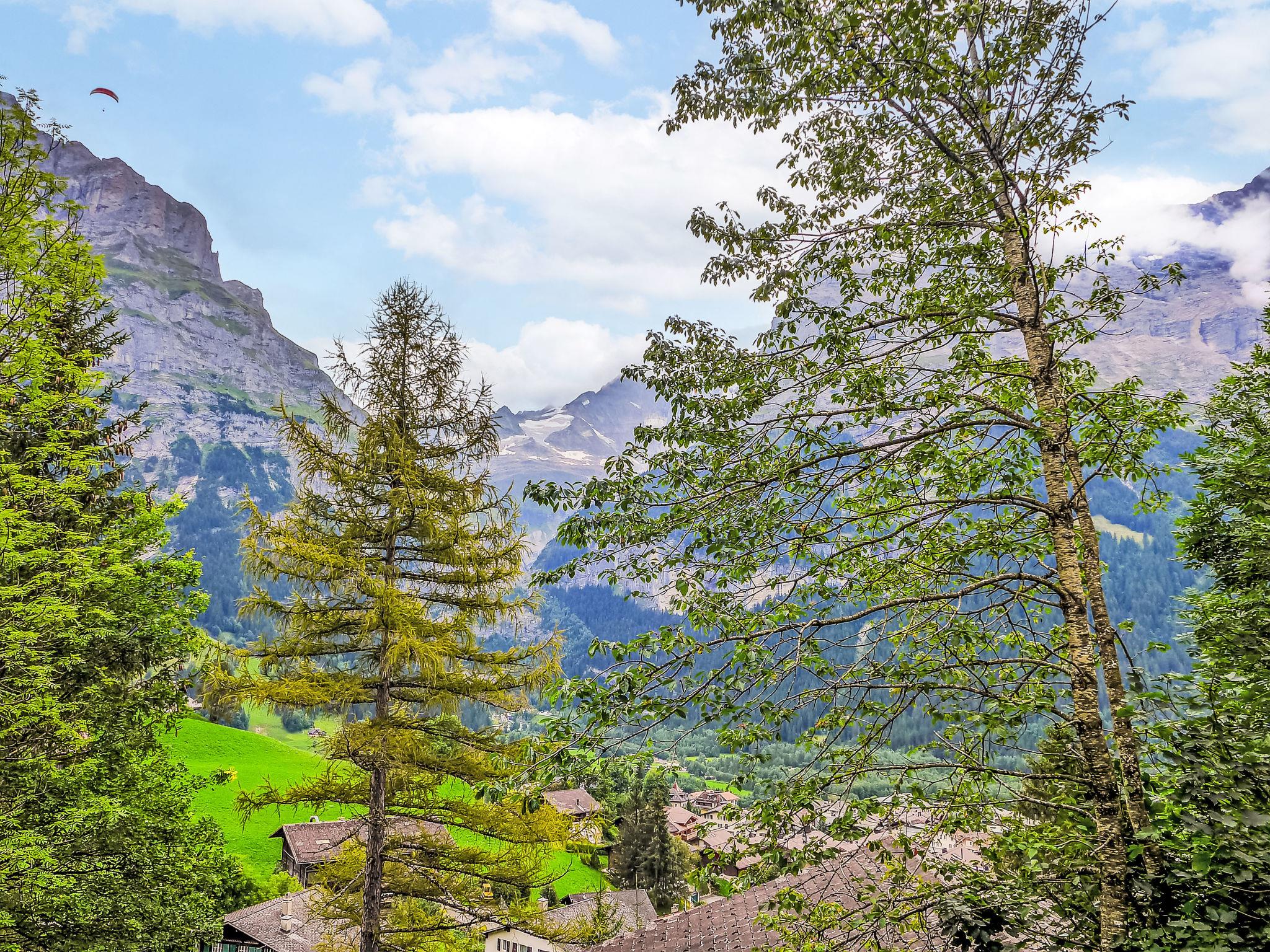 Cosy, rustic 2-family house "Chalet Colette", 2 storeys, detached, surrounded by meadows. In the district of Schybersboden, 550 m from the centre, in a quiet, sunny, elevated position on a slope, excellent location: right in the centre but still quiet, in the countryside, south facing position. For shared use: natural state property. Patio. In the house: storage room for skis, central heating system, washing machine, tumble dryer (for shared use, extra). Very steep motor access. In Winter: please take snow chains, 4x4 car recommended in winter. 80 m steep footpath to the house. Parking at 50 m. Shopping centre 550 m, restaurant 600 m, bakery 700 m, bicycle rental 1 km, 10 minute walk to the centre, bus stop "Kreuzweg Bus Nr. 122" 350 m, railway station "Grindelwald Dorf" 700 m, indoor swimming pool 300 m. Golf course (9 hole) 3.5 km, tennis 2 km, minigolf 800 m, sports centre 600 m, cable car 1 km, mountain railway 600 m, gondola lift 800 m, ski rental 300 m, ski bus stop 650 m, cross country ski track 2 km, children's playground 600 m. Well-known lakes can easily be reached: Thuner-/Brienzersee 18 km. Please note: no lift. Ski bus (free of charge). Free ski bus service to the ski region First, Männlichen/kl. Scheidegg.