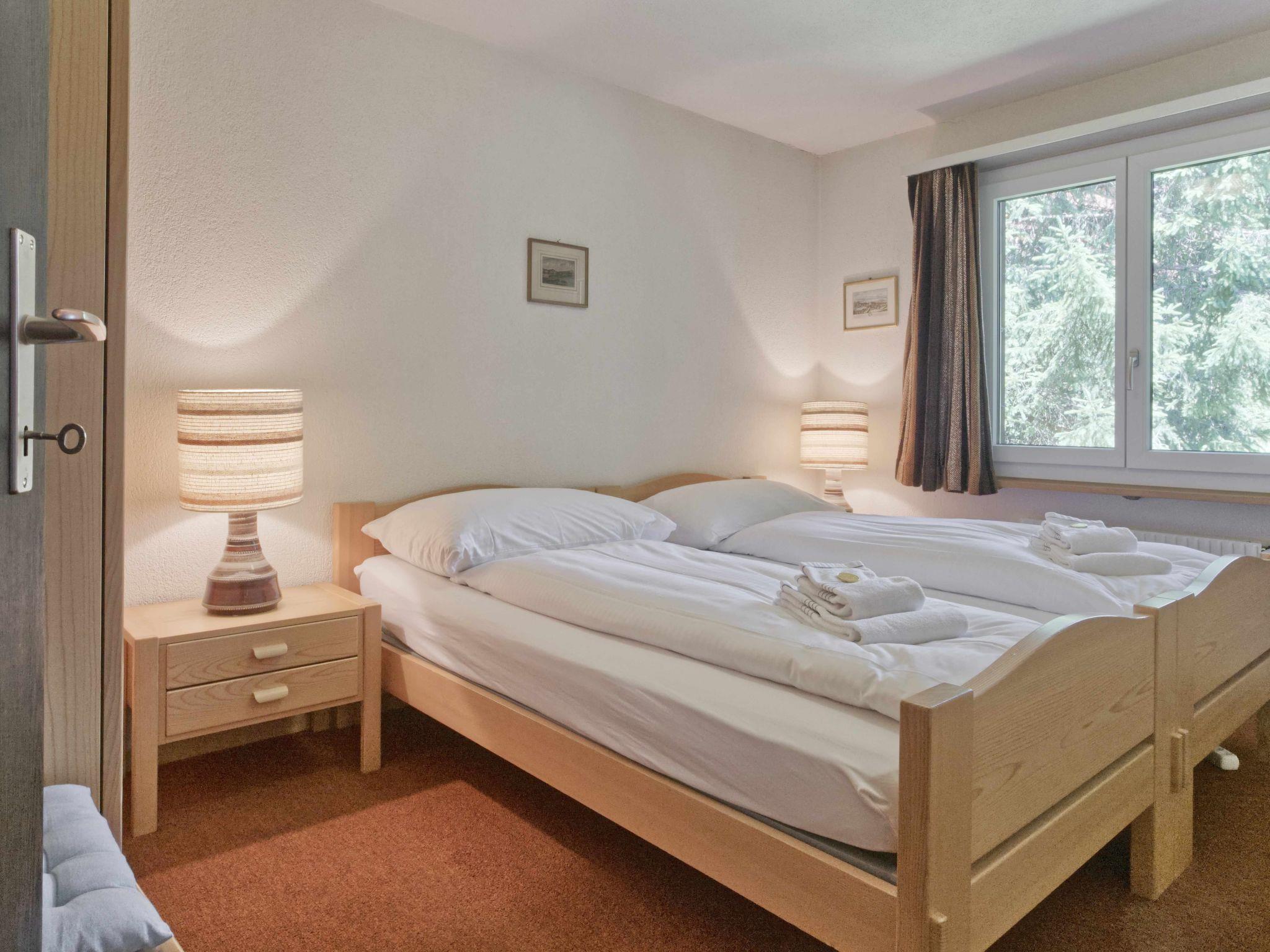 The simply furnished 4.5-room flat on the 2nd floor offers two bedrooms with two single beds and one bedroom with bunk beds as well as a bathroom with bath/WC on 70m2. The holiday flat is equipped with a closed kitchen and a cosy living and dining area. On the balcony you can enjoy the view of the marvellous mountain panorama.