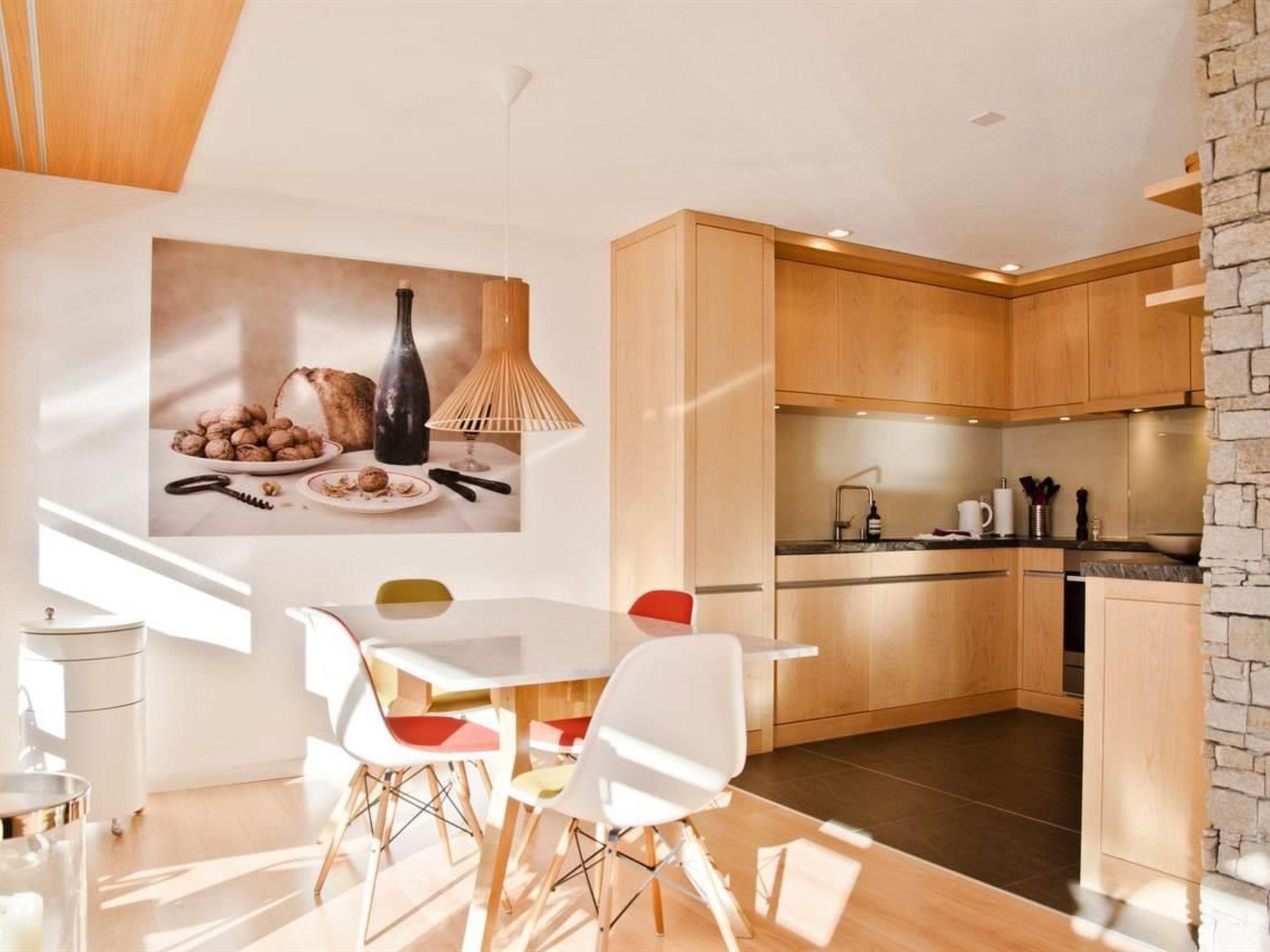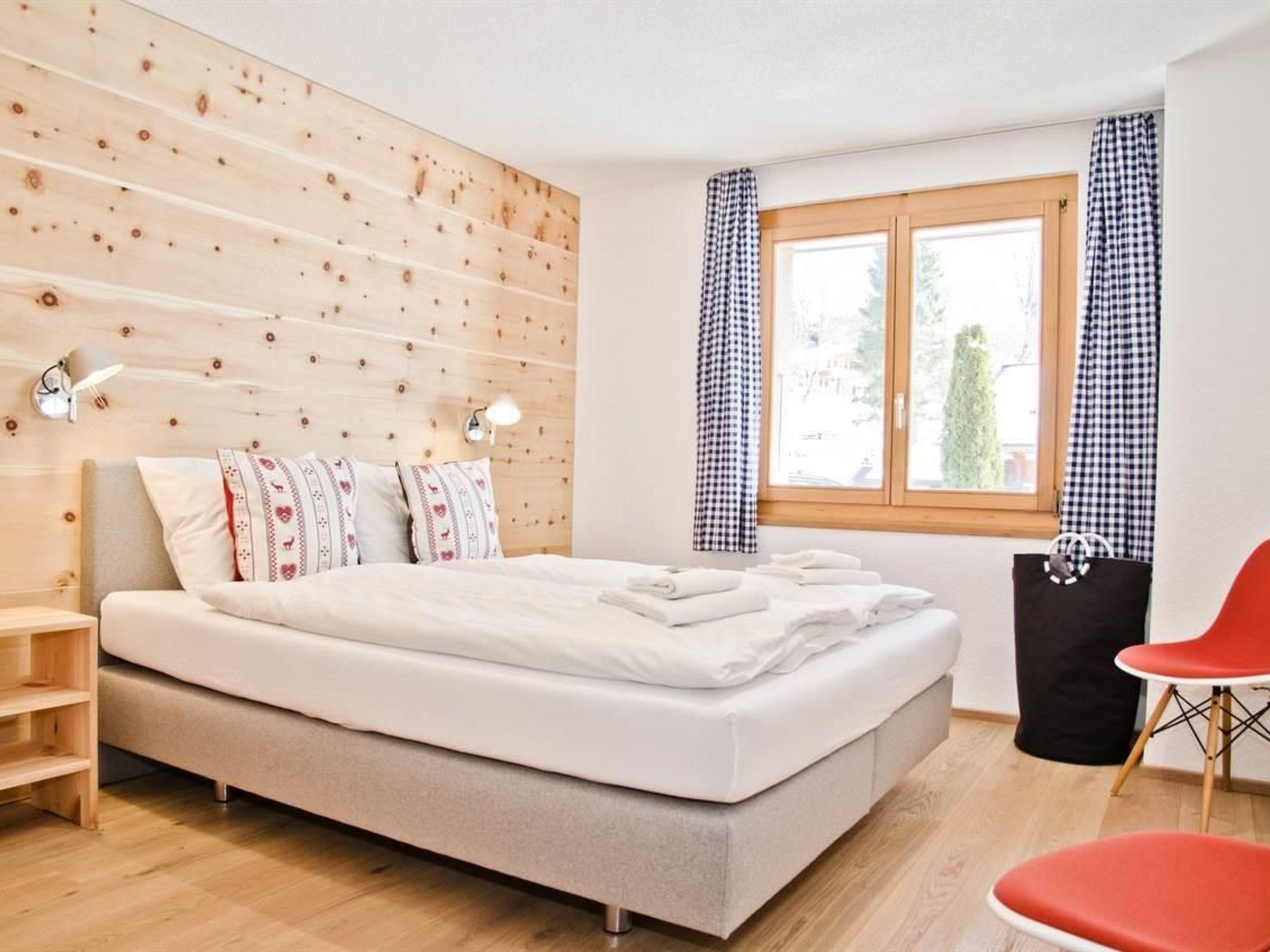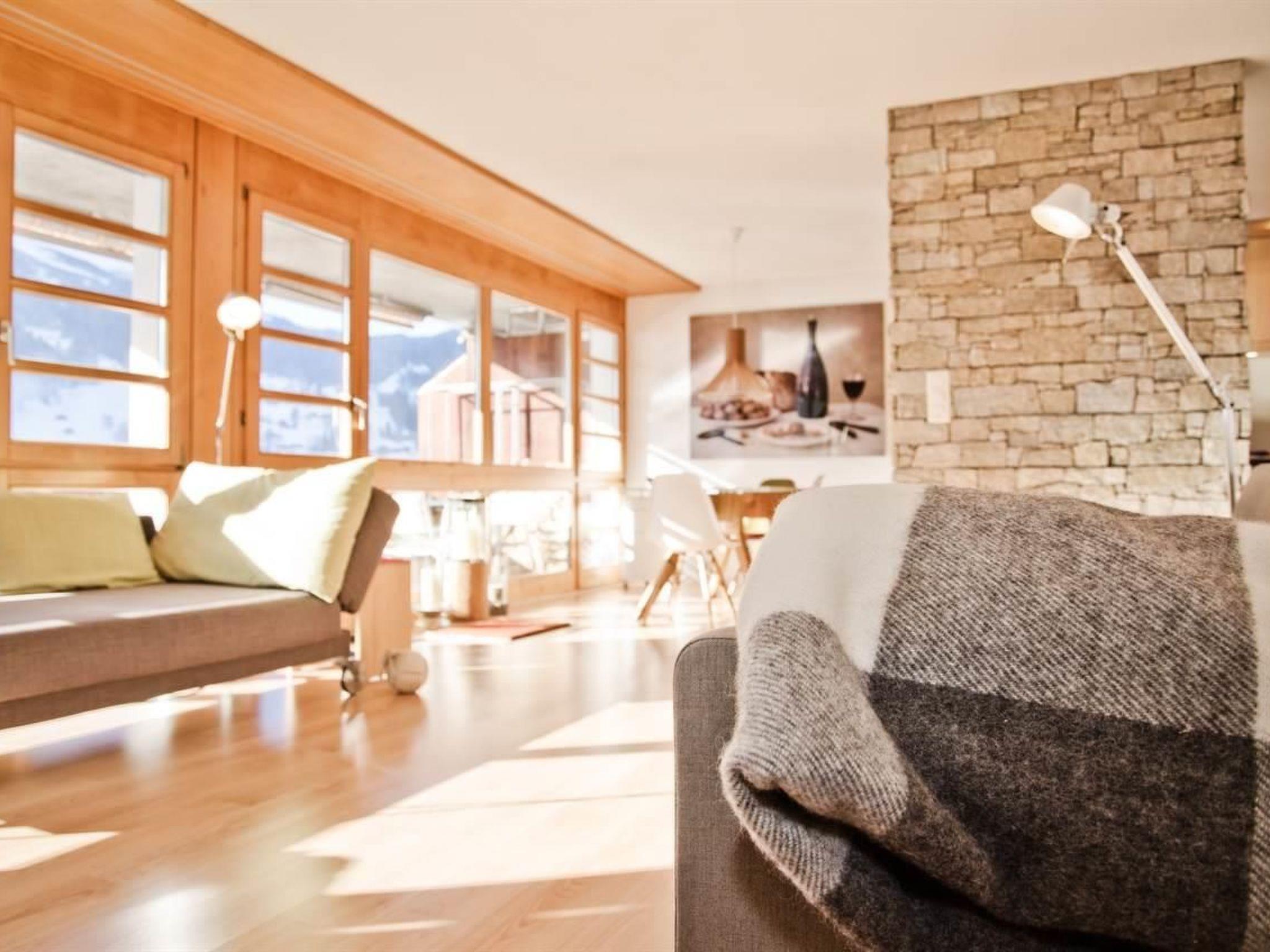 The 86m2 3.5-room apartment on the 3rd floor has a bedroom with double bed, a bedroom with two single beds and a bathroom with shower and toilet. The modern kitchen opens onto the open dining/living area. From the balcony you can enjoy wonderful views of the mountain panorama.