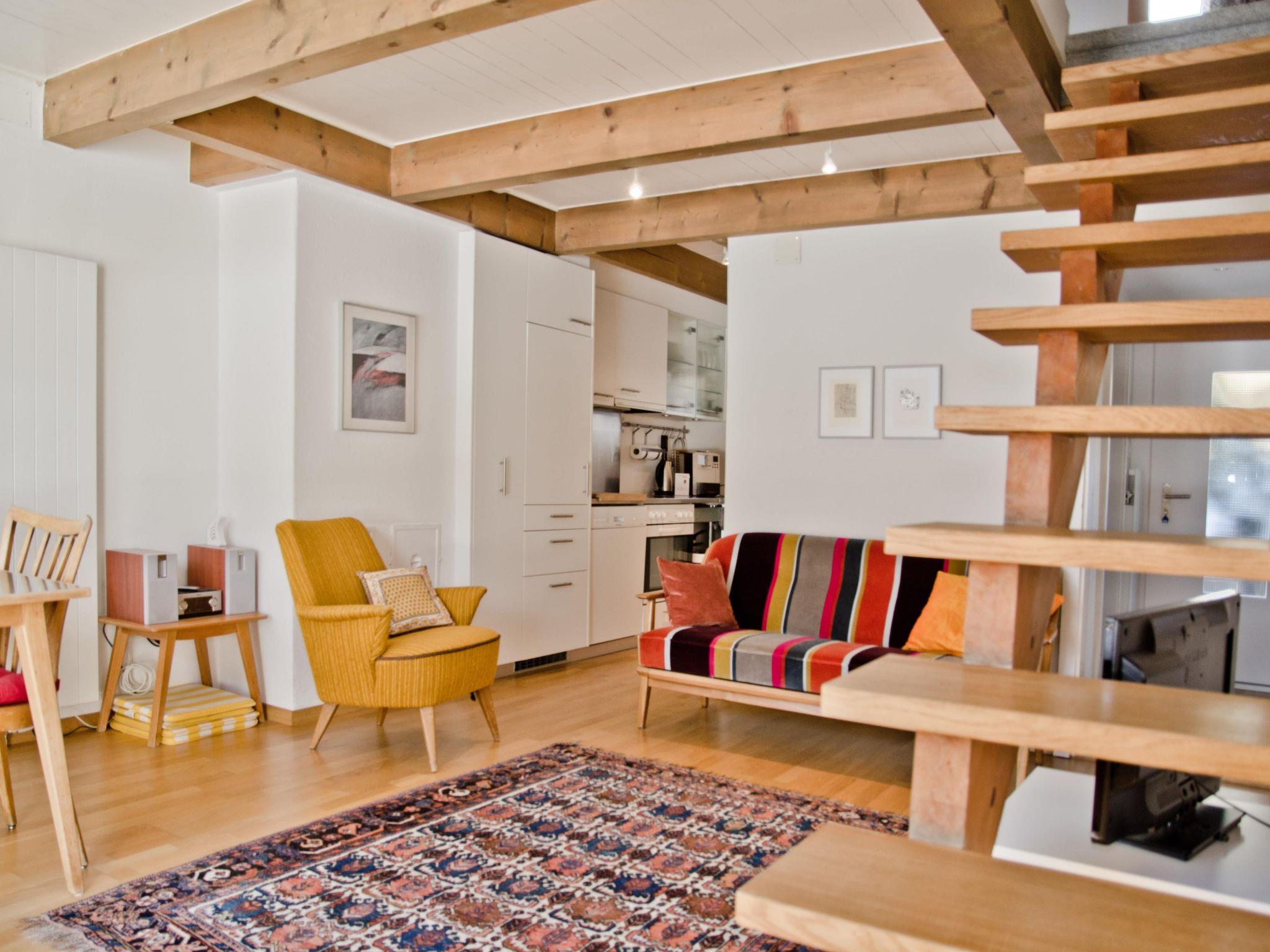 On 75m2, the cosy 3-room maisonette offers a bedroom with double bed, a bedroom with 2 single beds and a bathroom with shower and WC. The kitchen opens onto the cosy living and dining area. The covered terrace offers a fantastic view of the mountain panorama.