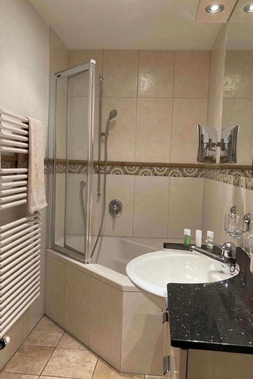 Inside, the flat is equipped to a high standard, leaving nothing to be desired. Dishwasher, filter and Nespresso machine, kettle, toaster, oven with baking trays and gratin dishes, microwave, various pans, plenty of crockery and glasses and much more are available. The washing machine and tumble dryer in the communal washing and drying room as well as the ironing board and iron in the flat offer practical solutions for your everyday holiday.