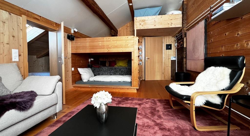 The Lindeli vacation apartment is a cozy duplex apartment in a quiet location just outside the village of Hasliberg Reuti. It boasts a magnificent view of the surrounding mountains and offers an ideal setting for nature lovers seeking relaxation away from the hustle and bustle. Surrounded by unspoiled nature, the Hasliberg Reuti gondola station can be reached on foot in around 17 minutes, making it an ideal starting point for hikes and winter sports activities. Here guests will find a perfect combination of seclusion and proximity to leisure activities, framed by the breathtaking backdrop of the Alps.