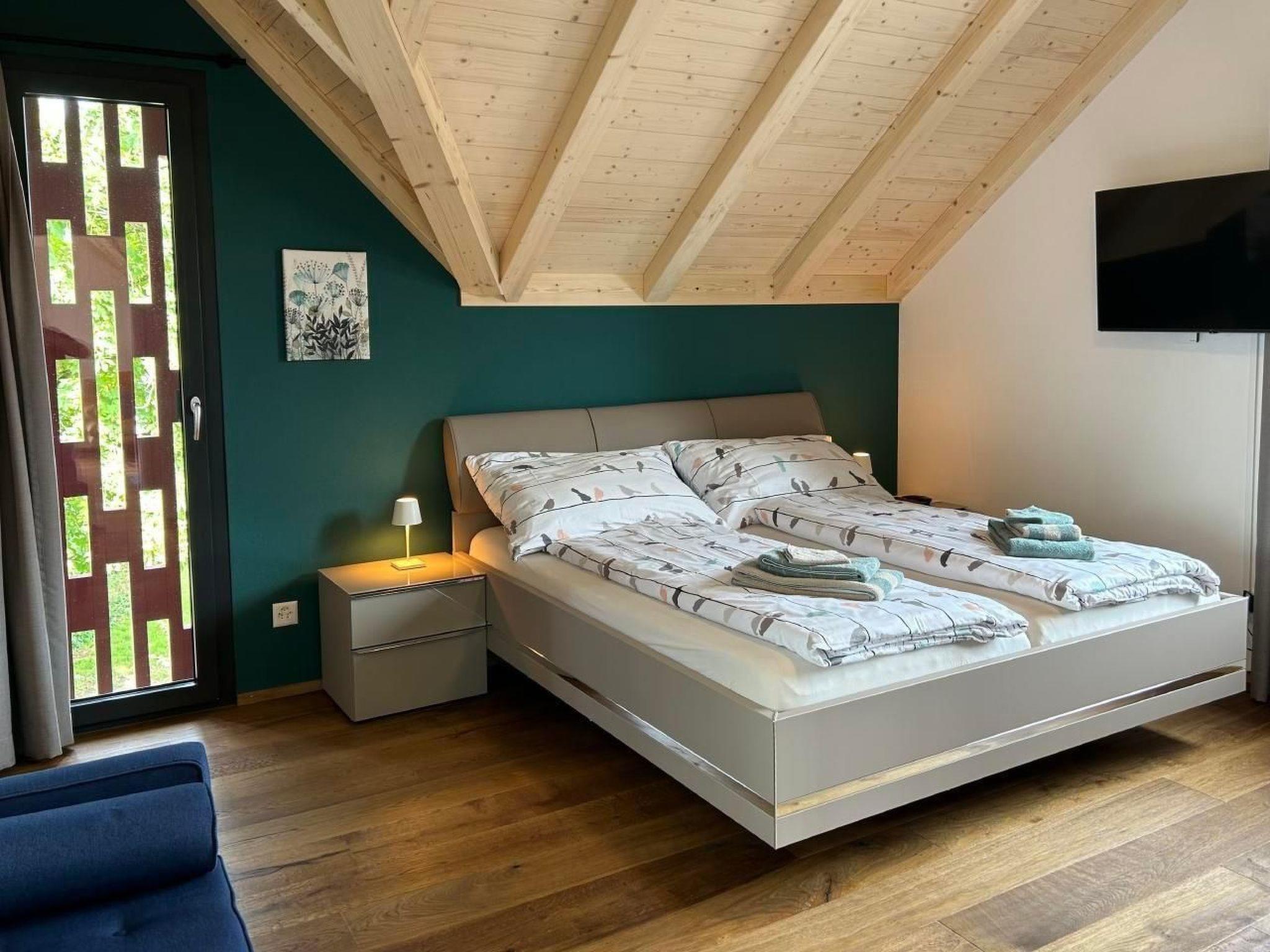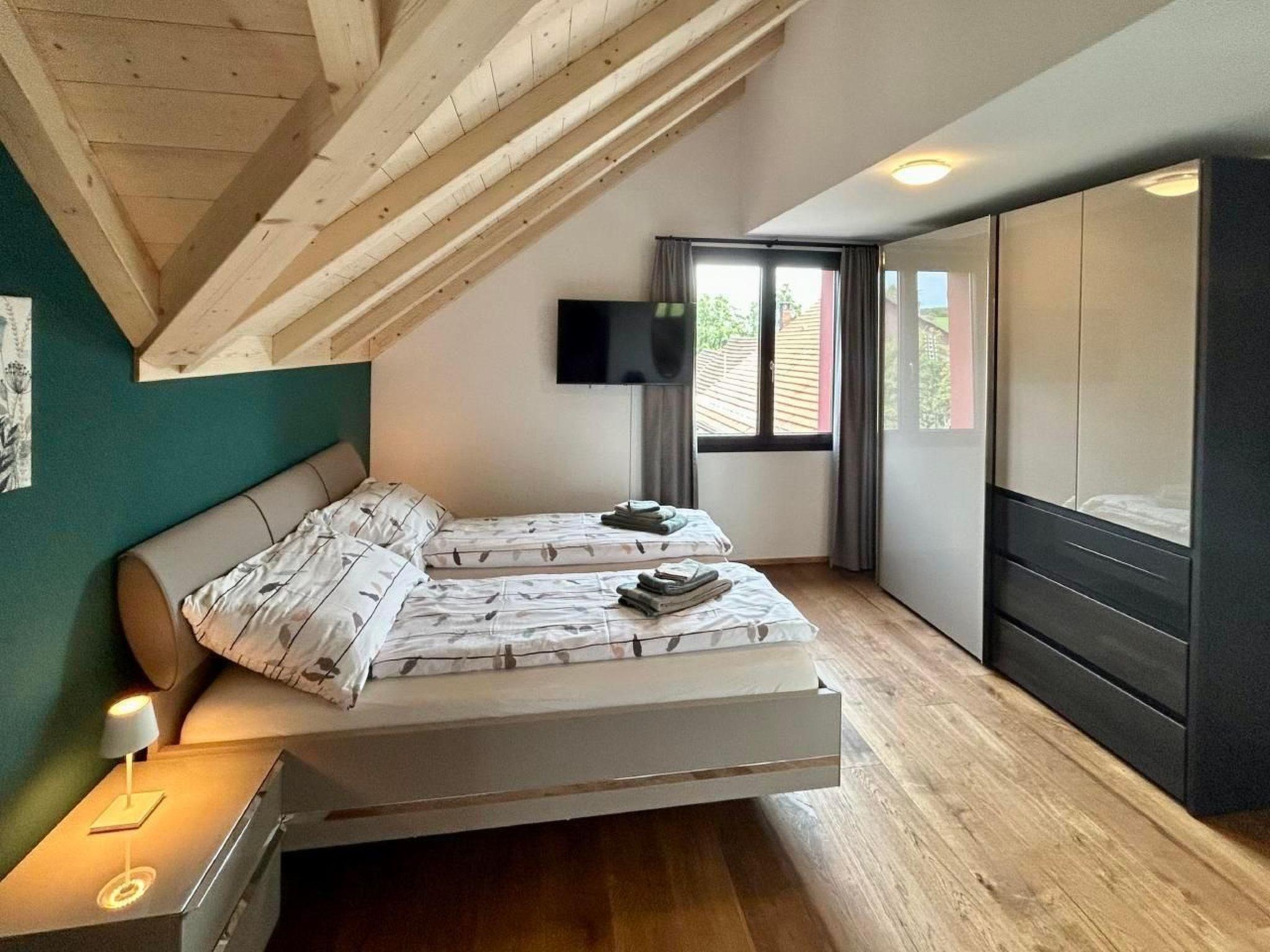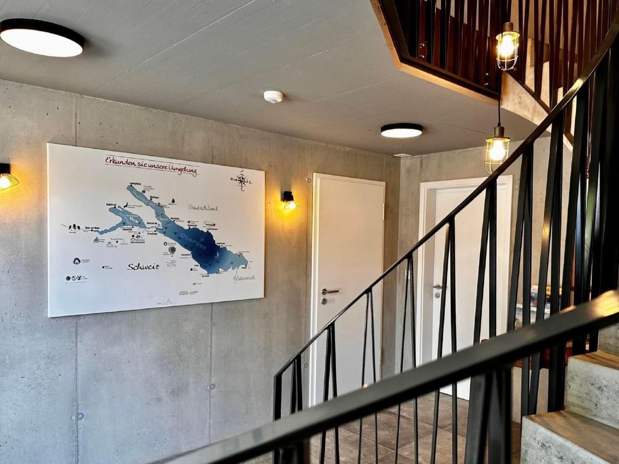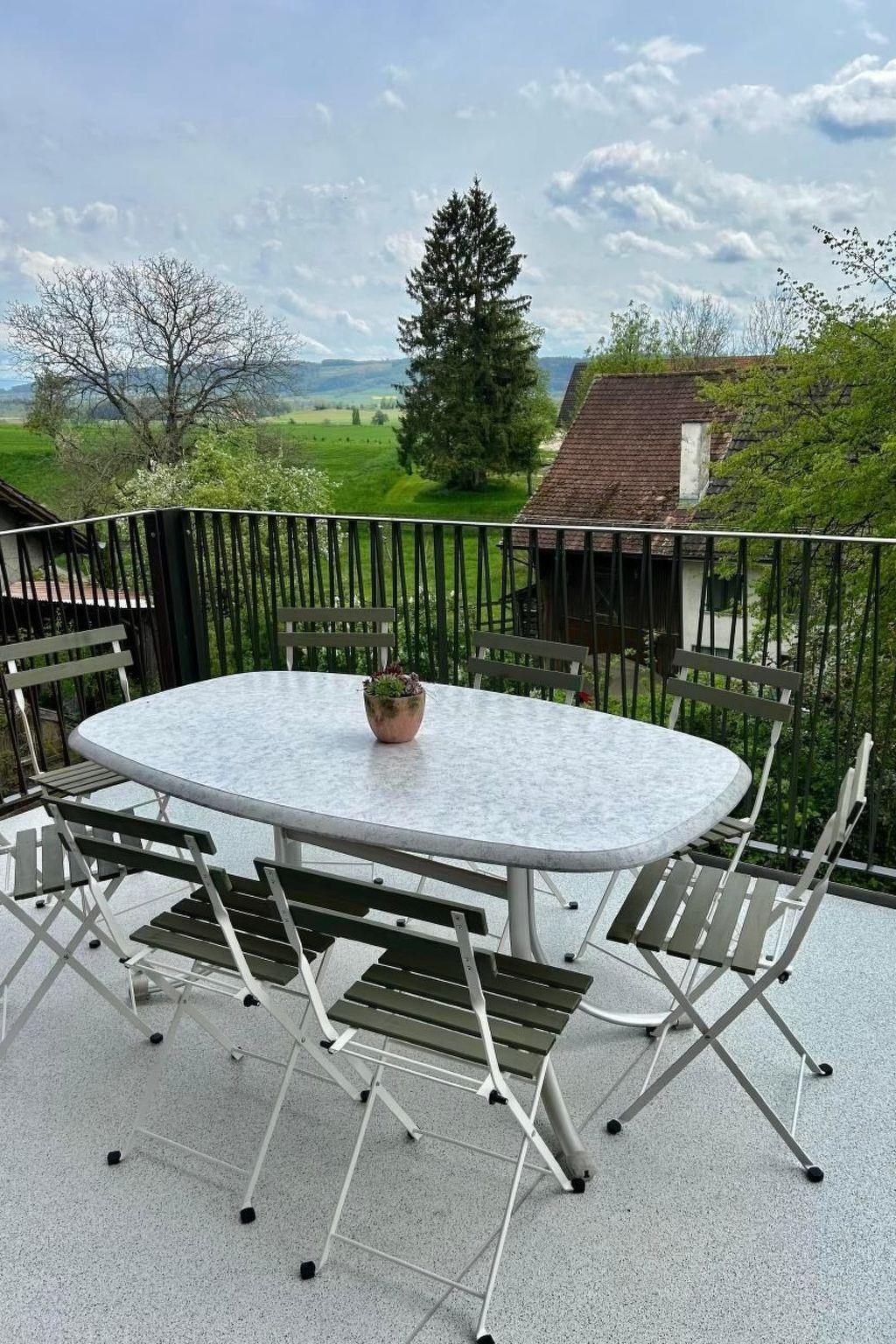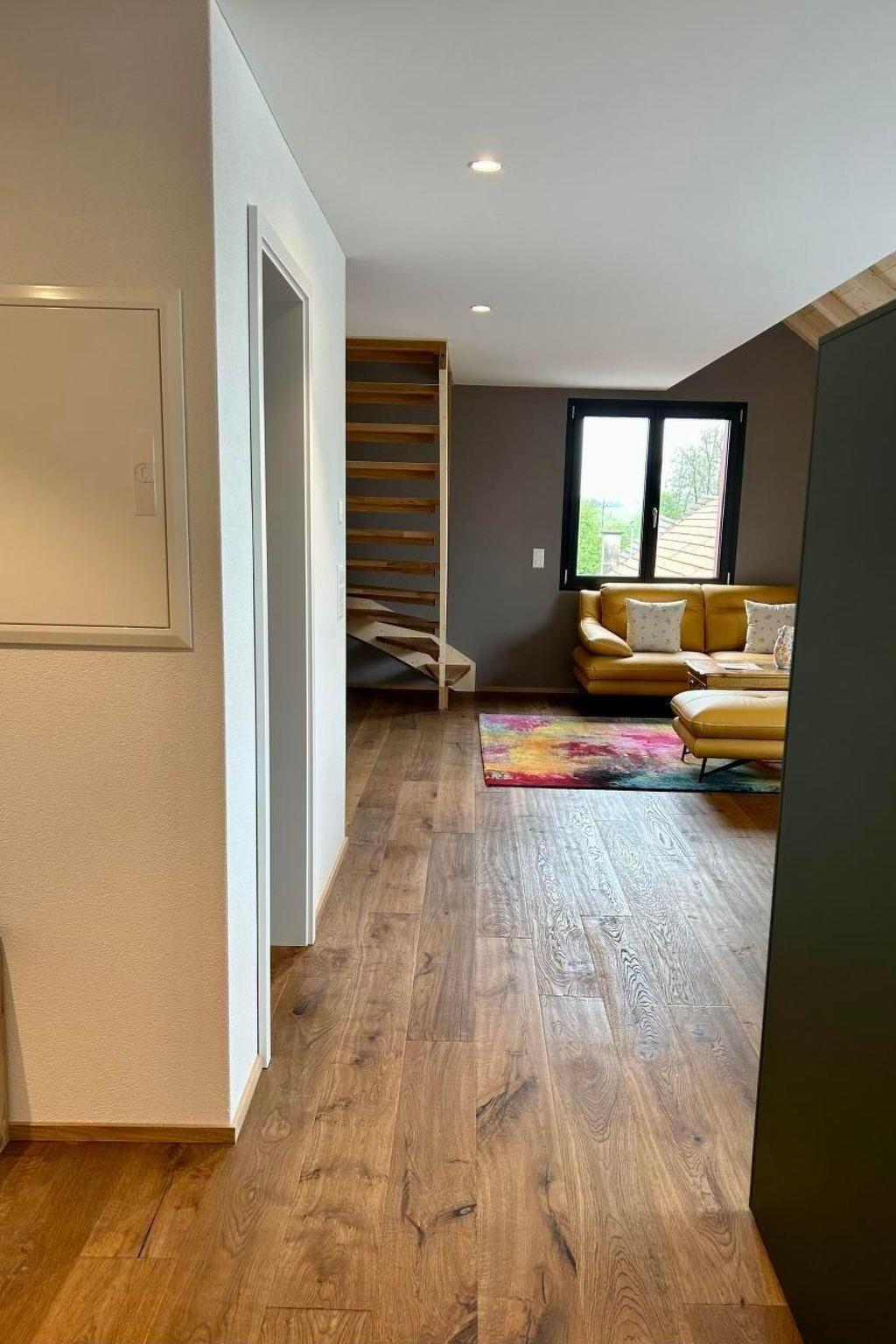 Guests have private access to the flat through the main entrance of the building. There are stairs to climb to the top floor 2nd floor (no lift). Outside the entrance is a locker. You will be given a code to open the locker and the key to your flat. This means that guests can check in themselves at any time after 16:00. A guest car park is available in front of the house and is included in the price. A garage parking space is available on request and for a fee, also with an electric car charging point. Bicycles can be parked in the garage at no extra charge. The bus stop (Postbus) is just a few steps away. Buses run every hour between Weinfelden and Ermatingen.