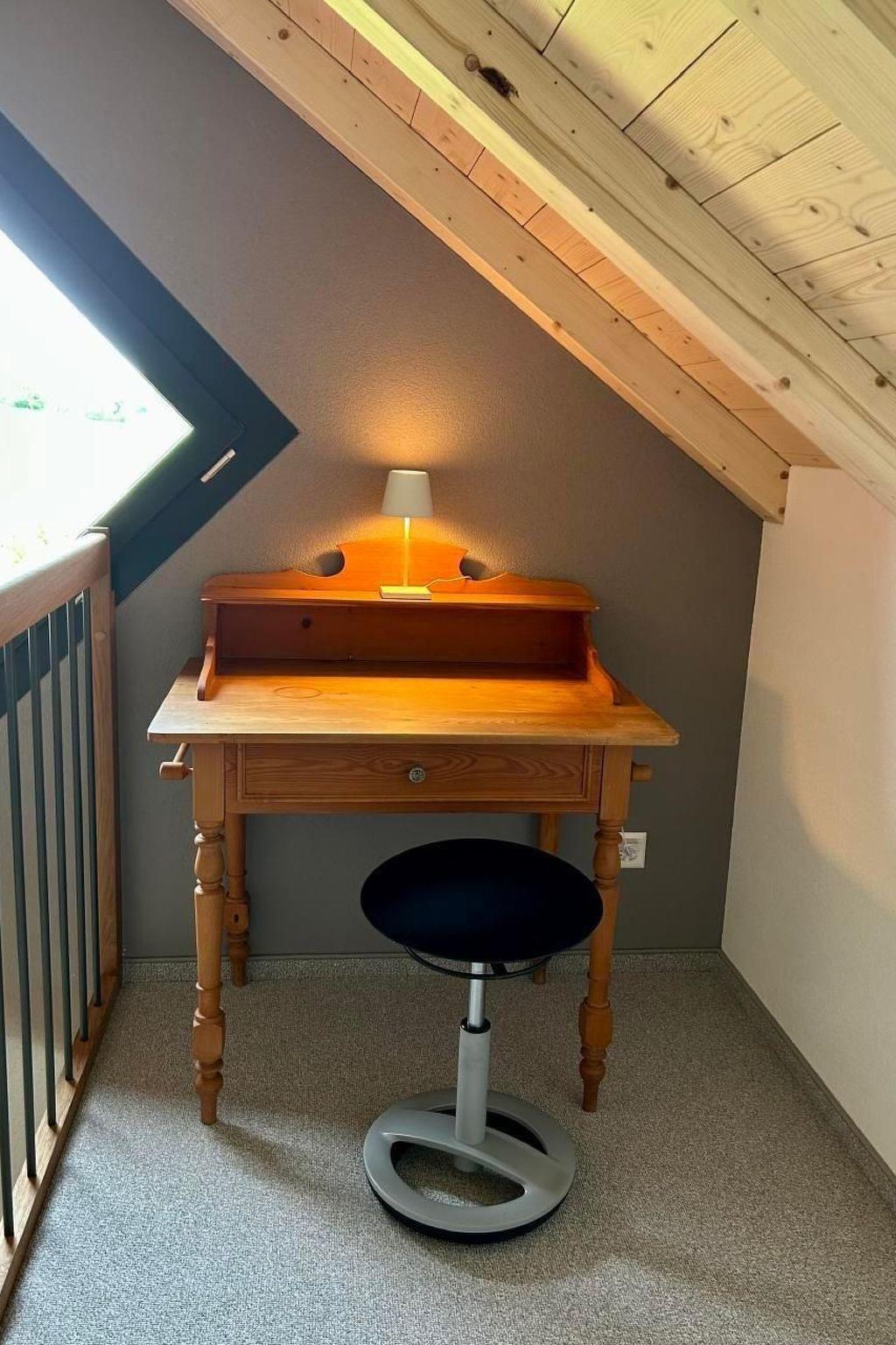 It has a master bedroom with a double bed and en-suite bathroom. A second bedroom has two single beds, which could also be converted into a double bed, and a separate bathroom with walk-in shower. In addition, there is a gallery with 2 single beds under the roof, which can be reached via a staircase from the living room. On special request, we can also set up one or two fold-out single beds for up to 8 guests. A unique place that offers plenty of space to spread out.