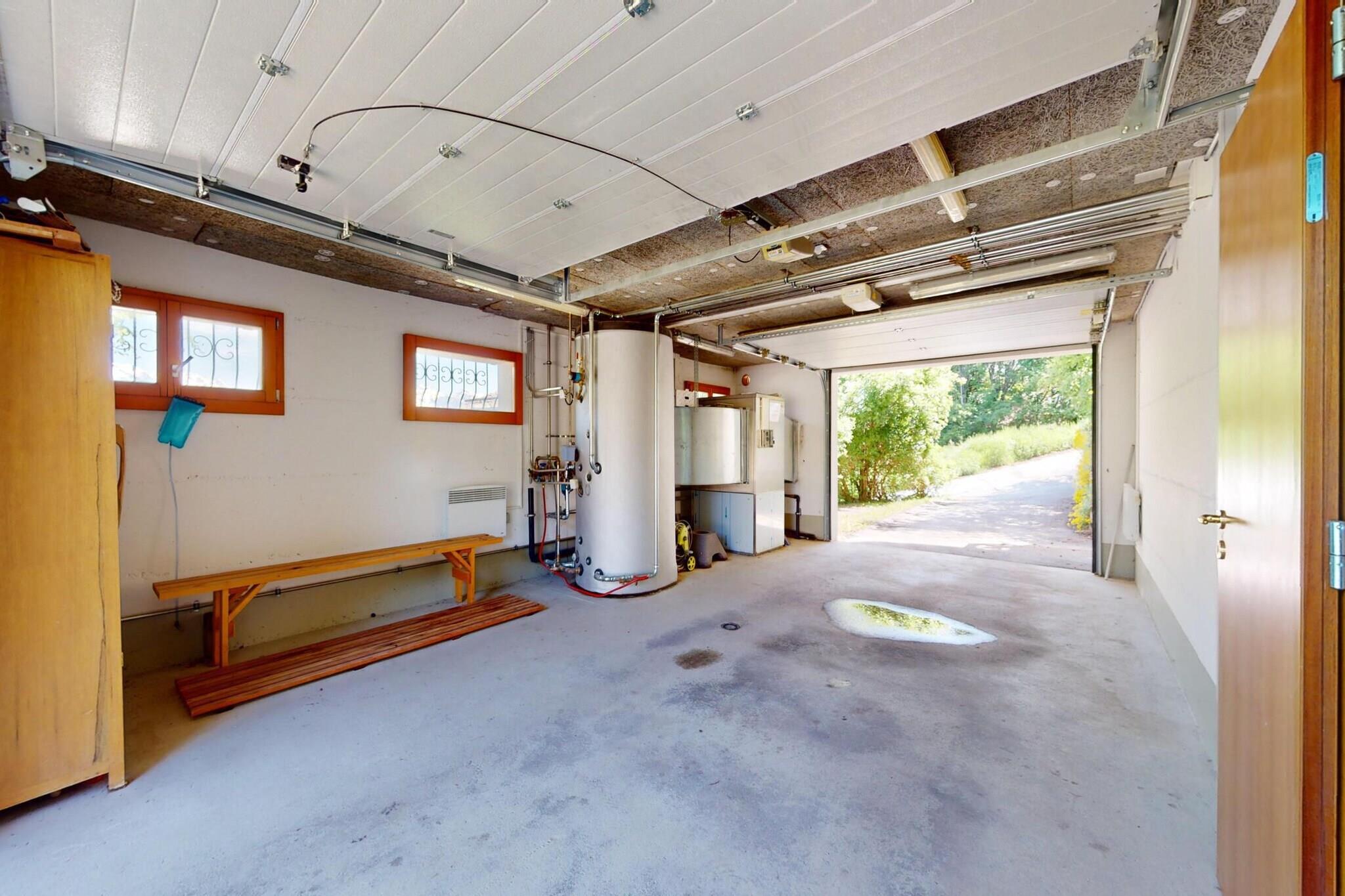 On the 1st floor: (Living room(TV(satellite), dining table, fireplace, seating area, DVD player, radio), open kitchen(hob(induction), electric kettle, toaster, coffee machine, oven, microwave, dishwasher, fridge-freezer, Juicer, dishes and cutlery), bedroom(bunk bed, high chair), Bedroom with bathroom(double bed, TV, bath tub, hairdryer), Bedroom with bathroom(double bed, TV, bath tub, toilet), Bedroom with bathroom(double bed, bath tub, toilet), Bedroom with bathroom(single bed, single bed, shower, toilet), Dedicated workspace) garage, washing machine, balcony, terrace(70 m2), garden, garden furniture, BBQ, swimming pool(private), swimming pool(private, heated), private indoor pool, iron
