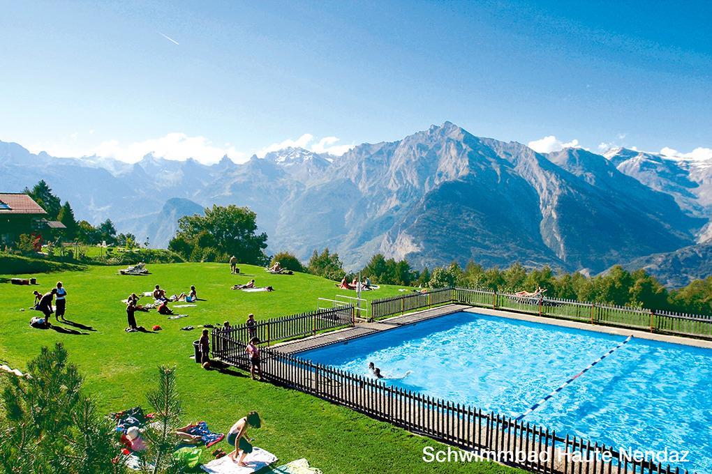 Ort: Nendaz. Chaletsiedlung in exponierter, sonniger Südlage. Chalet in ruhiger Hanglage mit Panoramablick ins Rhônetal. Zufahrt bis auf 30 m, von hier Fußweg zum Haus. Ortsmitte 1,7 km. Freibad 1,2 km. Tennisplätze 1,4 km.