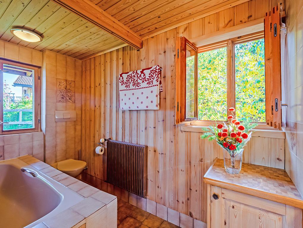 Haus: Großzügiges Chalet mit schönem Saunabereich. 7-Zimmer-Haus mit 150 qm Wohnfläche über 2 Etagen. Gemütlich-wohnliches Ambiente, Holzvertäfelung in allen Zimmern. Balkon mit herrlichem Blick. Zentralheizung.