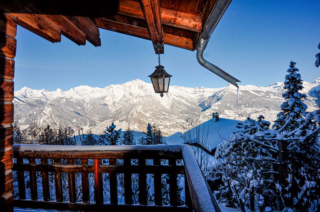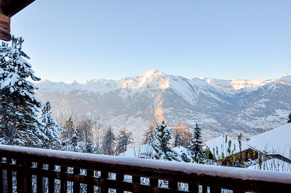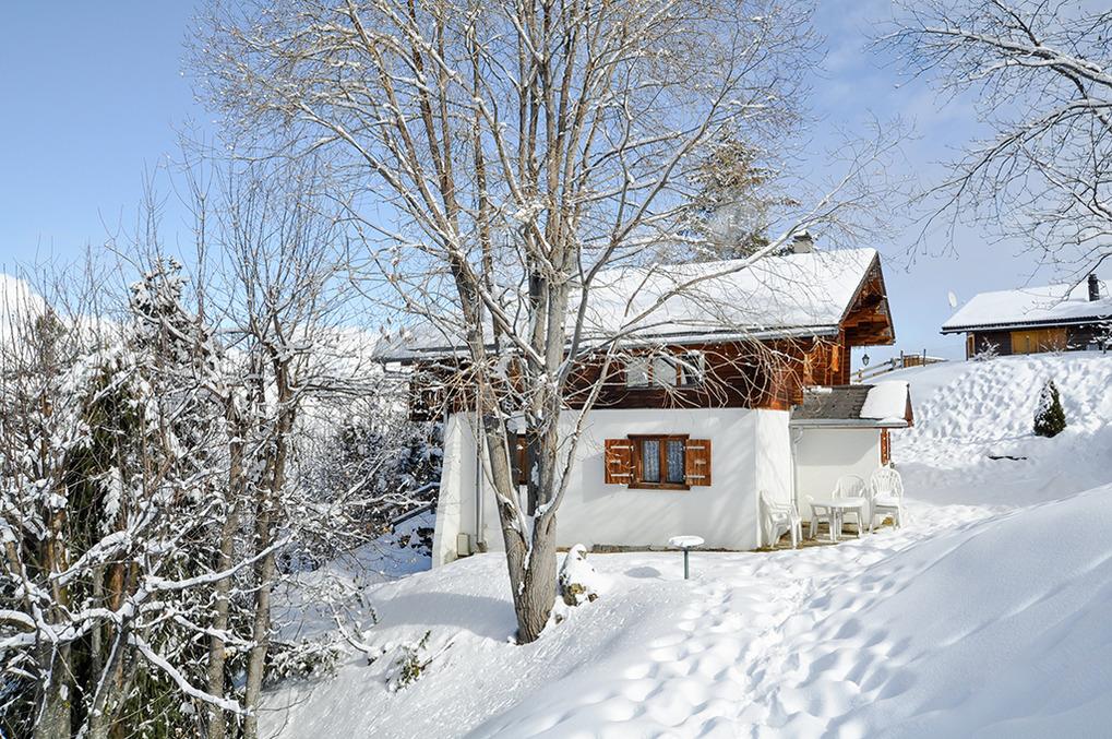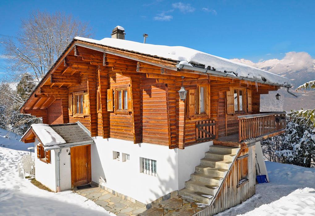 Ort: Nendaz. Chaletsiedlung in exponierter sonniger Südlage. Chalet in ruhiger Hanglage mit Panoramablick ins Rhônetal. Zufahrt bis auf 30 m, danach Fußweg zum Chalet. Skibus 100 m. Gondelstation 2400 m. Ortsmitte 1700 m.