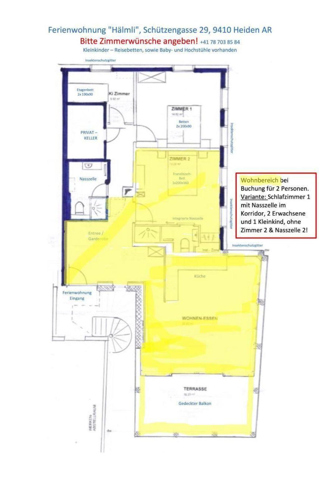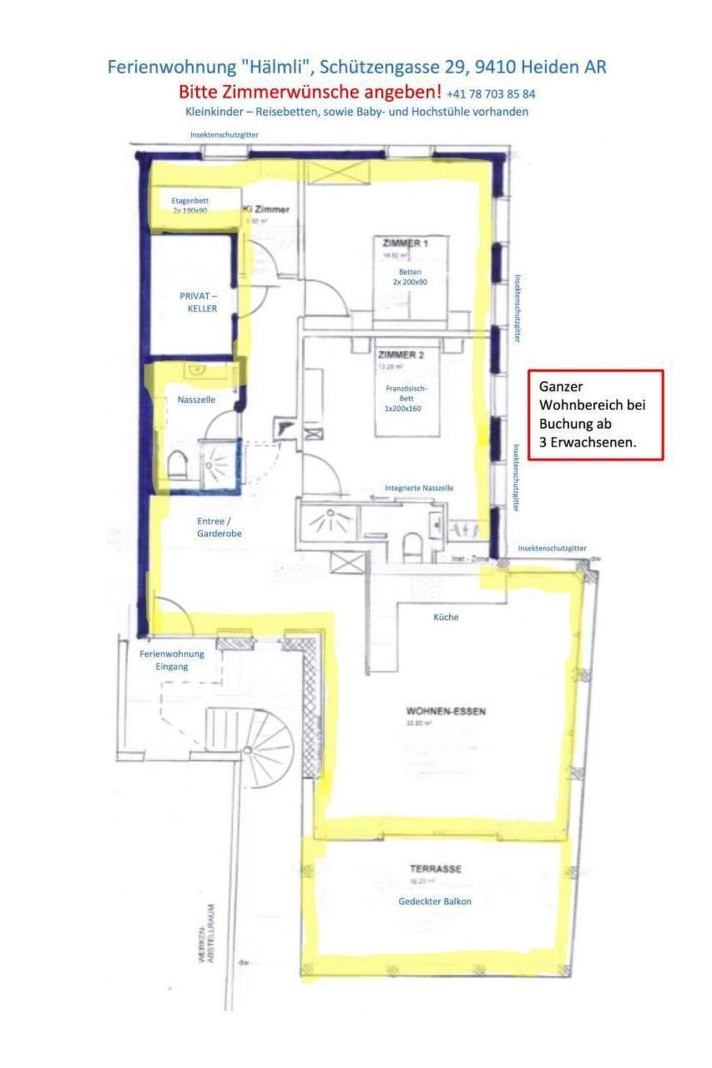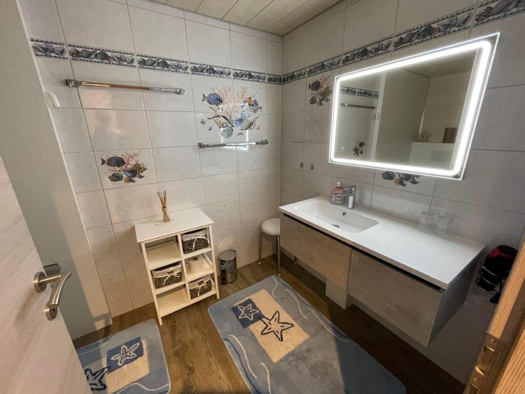 Inside the flat, you will find a spacious entrance hall with cloakroom, which leads into a modern, open-plan kitchen with dishwasher. The adjoining living room, equipped with fondue dishes and an open-plan kitchen, opens onto a large balcony via a smooth-running sliding door. For your comfort, there are three bedrooms to choose from, including a master bedroom and a bedroom with a French bed and integrated bathroom. An additional bathroom, which is included in the rental price for 3 or more guests (over 16 years of age), increases the living comfort.