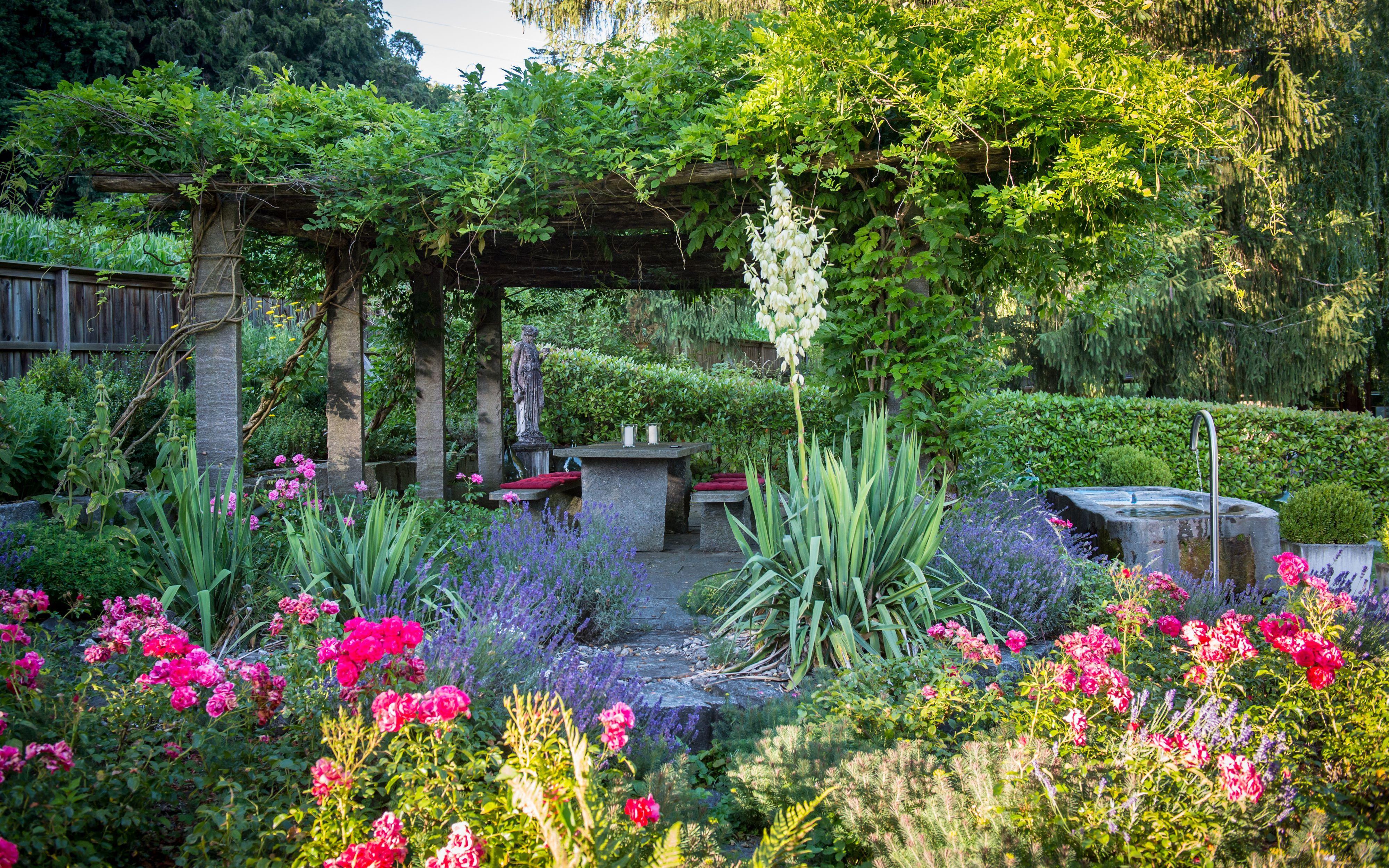 - - view: garden, forrest, lawn, valley