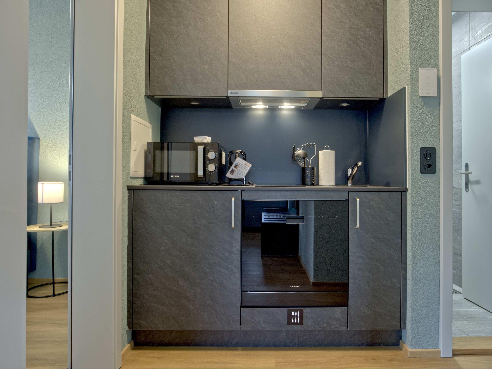The cosy living area is lovingly furnished and invites you to linger. Here you will find a comfortable sofa corner and a small dining area where you can enjoy your meals. The sofa bed offers space for two more people, so that smaller groups or families can also enjoy a pleasant stay. The modern kitchen with cooking facilities, microwave, dishwasher and Nespresso coffee machine is fully equipped with everything you need for your stay. The accommodation offers free, shared laundry facilities.