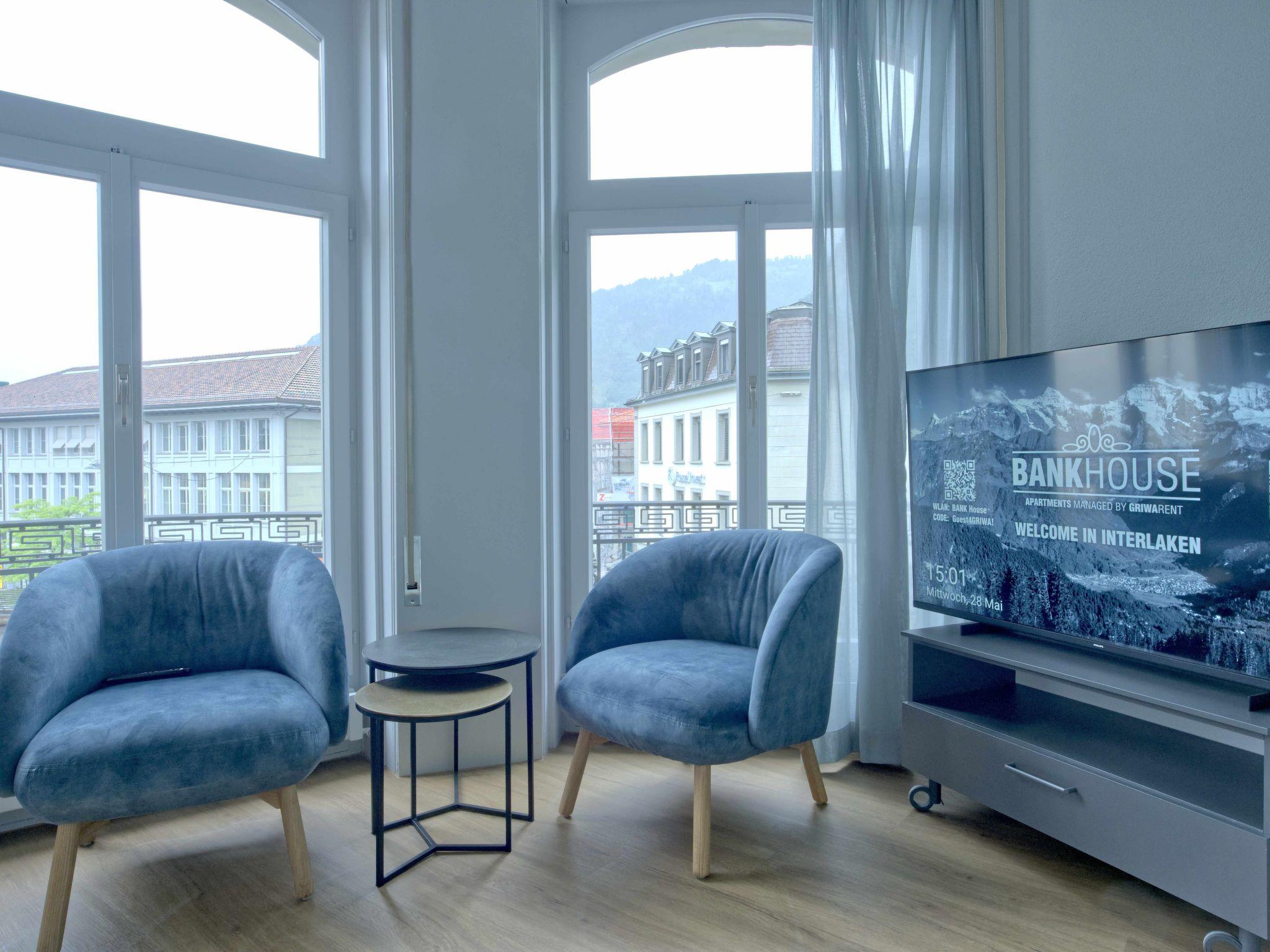 The historic building, once an imposing bank, is located in the middle of the vibrant centre of Interlaken and is just a few steps away from Interlaken West train station. The bus station is just a few metres from the entrance.