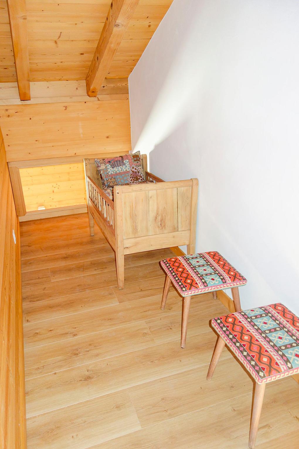CH 383.70A Wohnung 4-6 Pers.: 3-Zimmerwohnung mit 75 qm Wohnfläche über 2 Etagen. 2. Etage: Wohnraum mit Couchgarnitur (Schlafsofa 2 Pers.), TV, Esstisch, Einbauküche (Backofen, Mikrowelle, Spülmaschine), Balkon. Doppelzimmer. Bad: Du, Wb, WC. Dachgeschoss mit Schrägen: Doppelzimmer. Bad: Bw, Wb, WC.