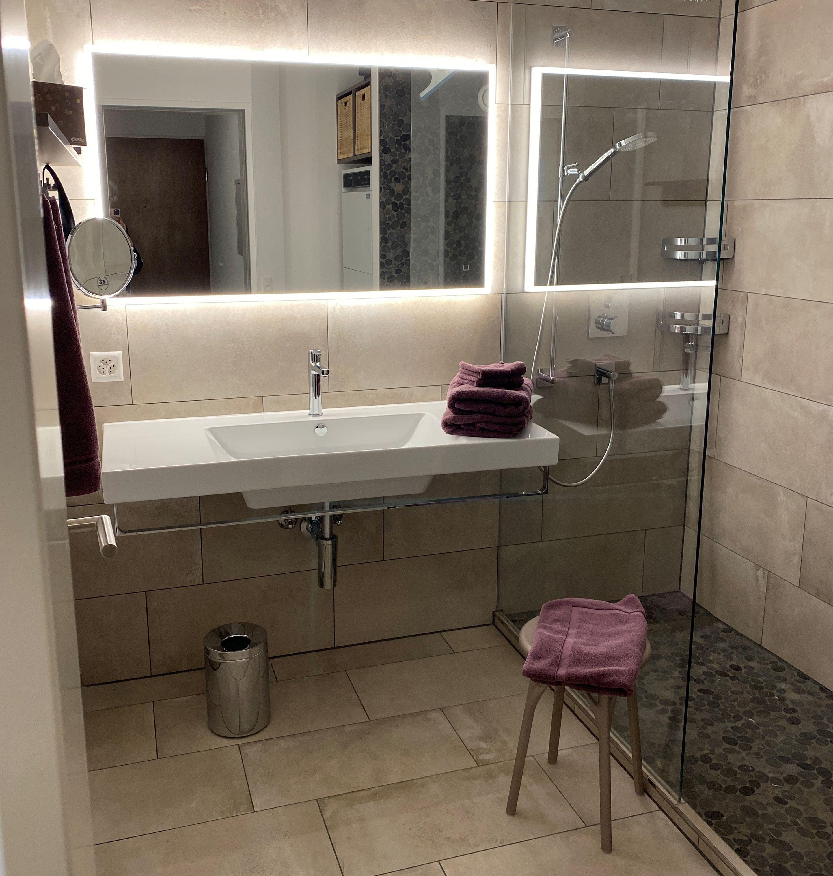 Inside, guests will find a charmingly furnished flat that leaves nothing to be desired. The living areas are equipped with every comfort - including a Nespresso coffee machine, a dishwasher and a washing machine with tumble dryer. A fan in the bedroom and living room also ensures pleasant temperatures. The small, functionally equipped kitchen invites you to prepare your meals.