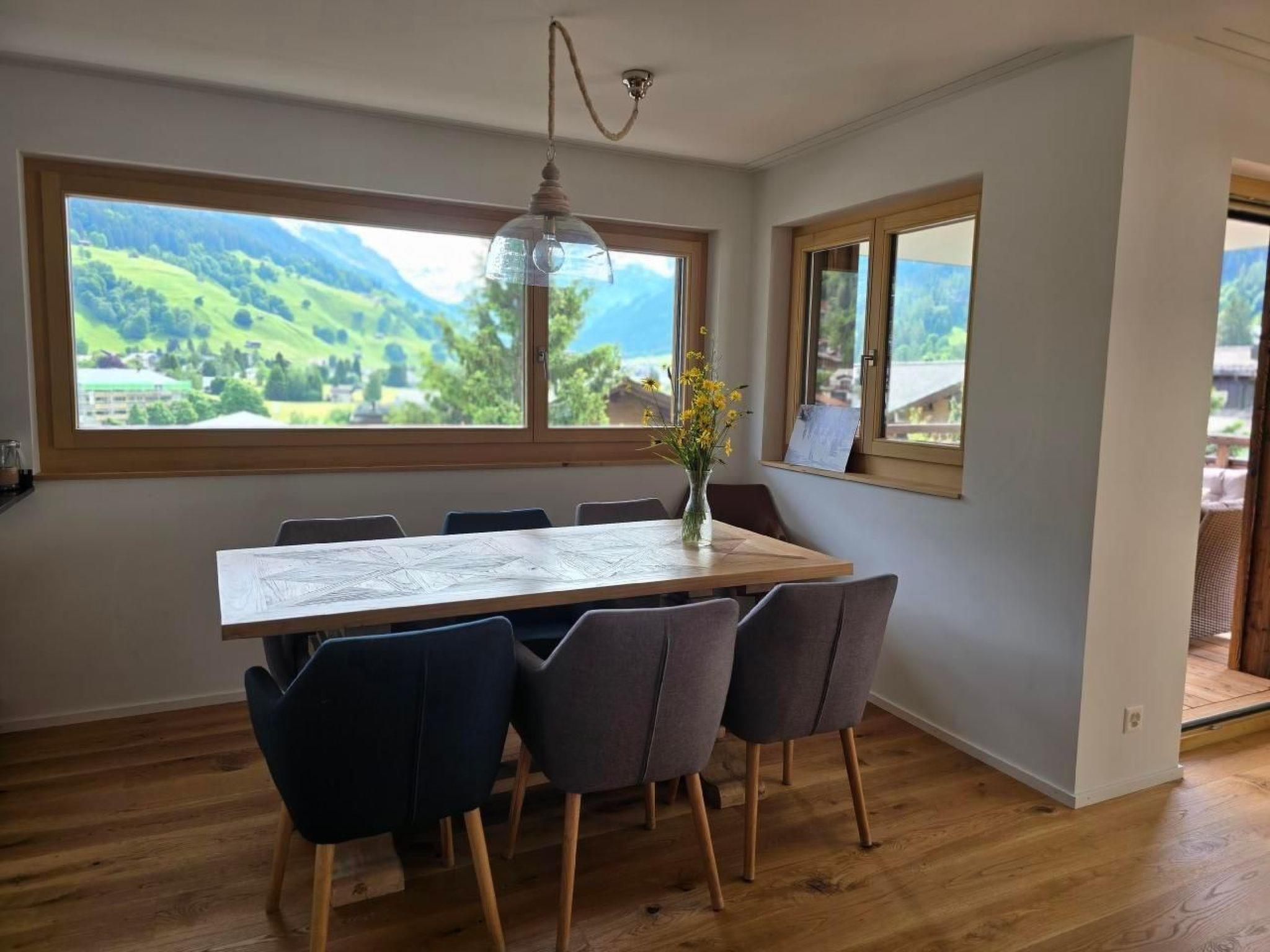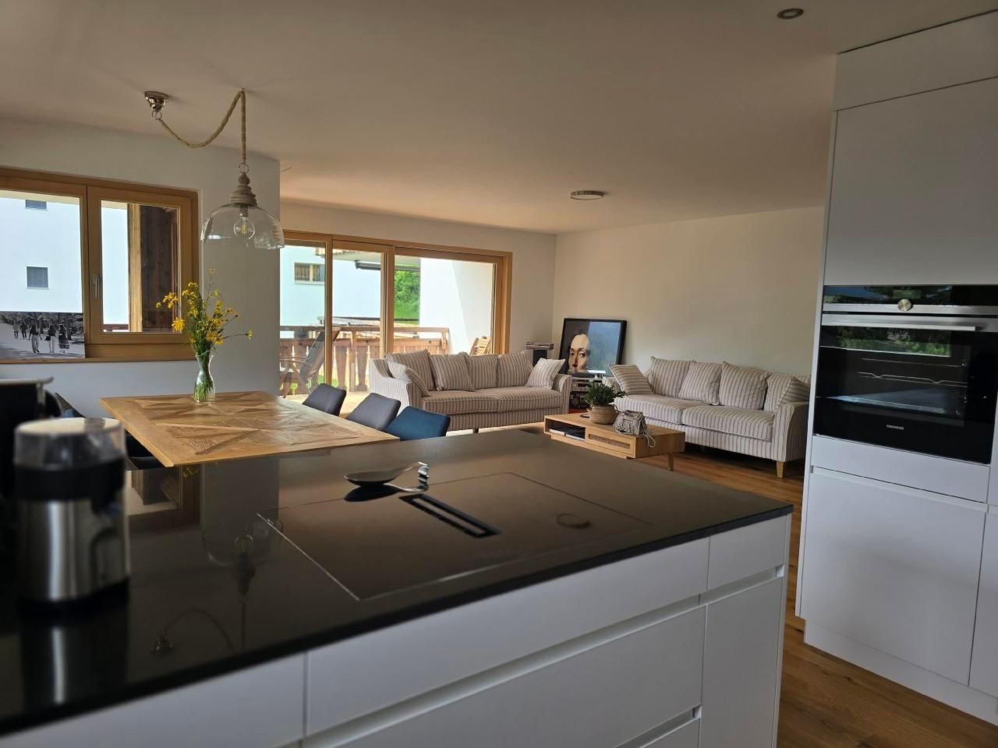Beautiful and newly released 122 meter apartment has a terrace with great views. In the center of the pretty village of Klosters, with numerous restaurants, bars and shops. The apartment is located 200 meters from the Klosters Platz train station and the famous ski resort of Davos - Klosters. Bright and cozy apartment built in December 2022. Fully equipped kitchen, bed linen and towels included. Access to the apartment is handicapped accessible. Garage space included.