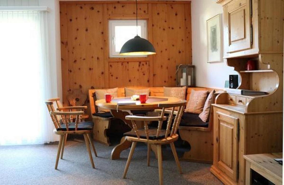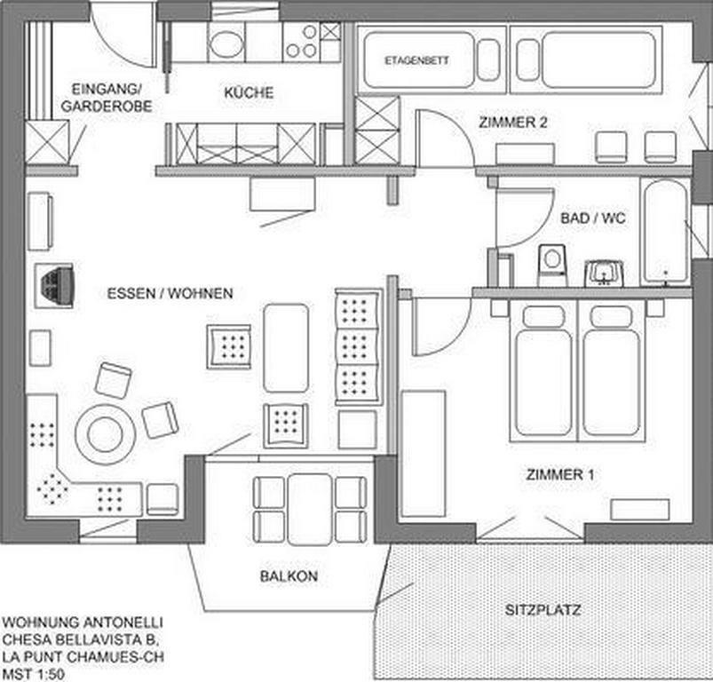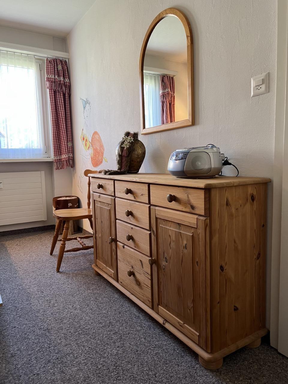 3 ½-room apartment (65 m2) for up to 6 persons with balcony and garden with view on the Piz Mezzaun. Entrance with wardrobe. Large and light living and dining room (couch and armchair, corner seat and table, TV, Radio, free WiFi-Internet) with sleeping-possibility on the sofabed. Completely furnished kitchen (glass-ceramic hob, oven, dishwasher, steam discharge, fridge). 2 bedrooms (1 parents room with 2 single beds; 1 children’s room with 1 bunk bed and 1 single bed; children travel cot on request available for free). Bathroom/toilet. Storeroom for skis and bikes. Washing machine and tumbler for universally use. Garage space available.
