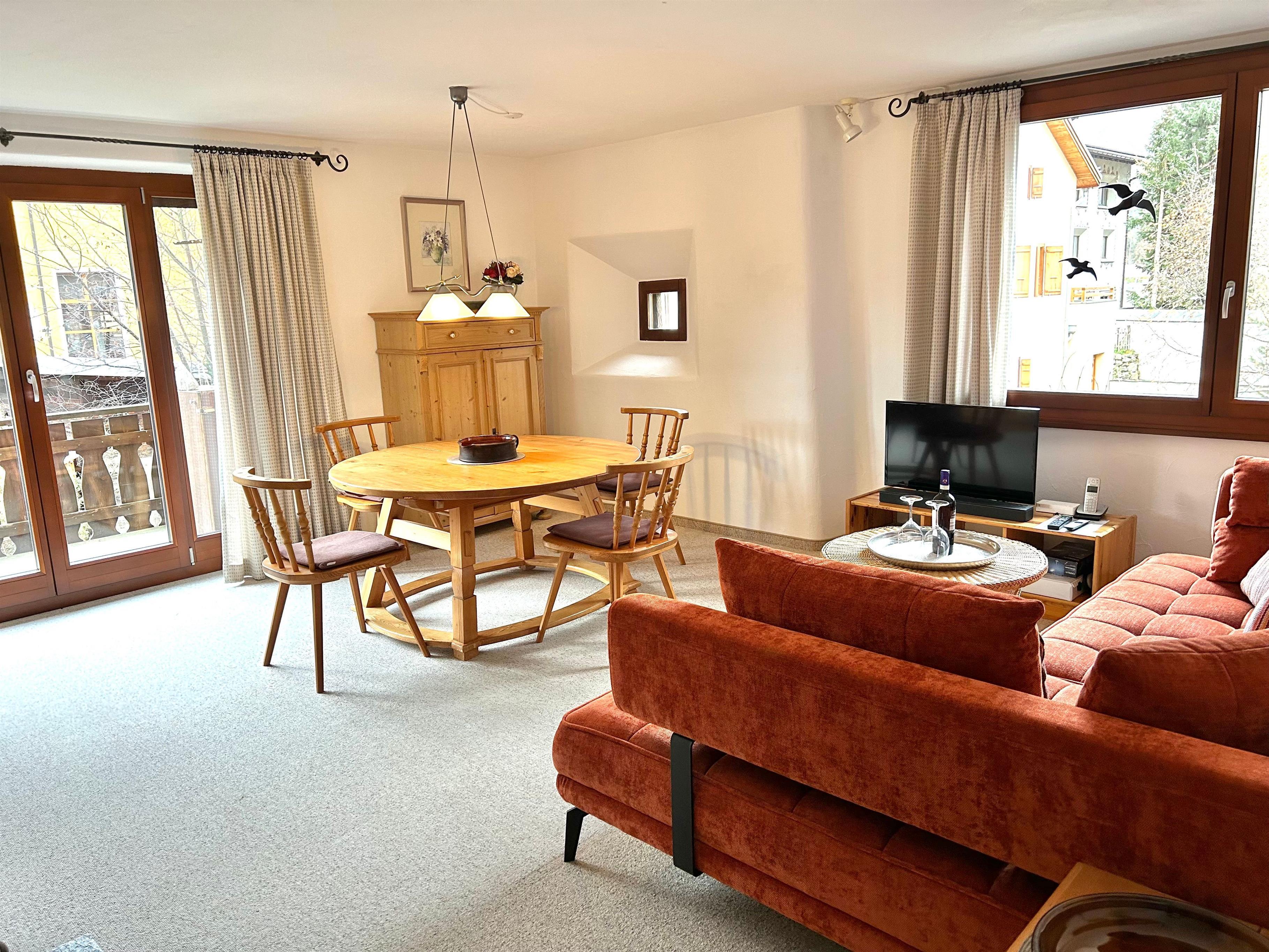 The pretty flat in the historic Engadine farmhouse "Chesa Engel" is located at the picturesque beginning of La Punt. This idyllic retreat is in a quiet location, surrounded by the majestic patrician houses, not far from the breathtaking natural scenery of the St. Moritz ski area and directly on the marathon cross-country ski trail. The proximity to the Inn and a beautiful foot and cycle path running directly past the property give this location its unique charm.