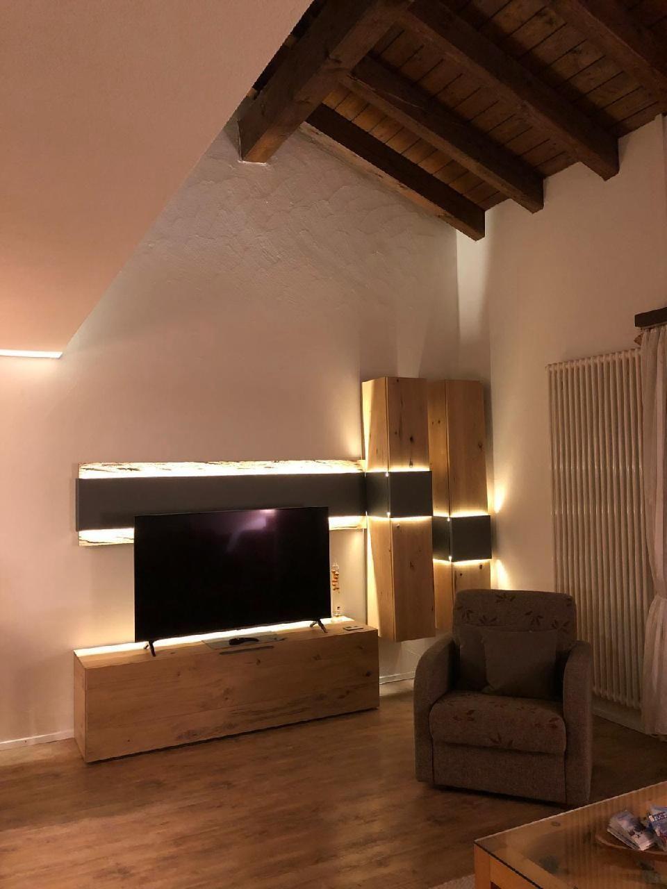 The duplex flat on the 1st floor has a cosy living room with dining area, well-equipped open kitchen (4 ring hob, oven, fridge with freezer compartment, dishwasher), cupboards, bathroom/WC, balcony with wonderful views. A wooden staircase leads to the gallery, which is furnished with a double bed and wardrobes.