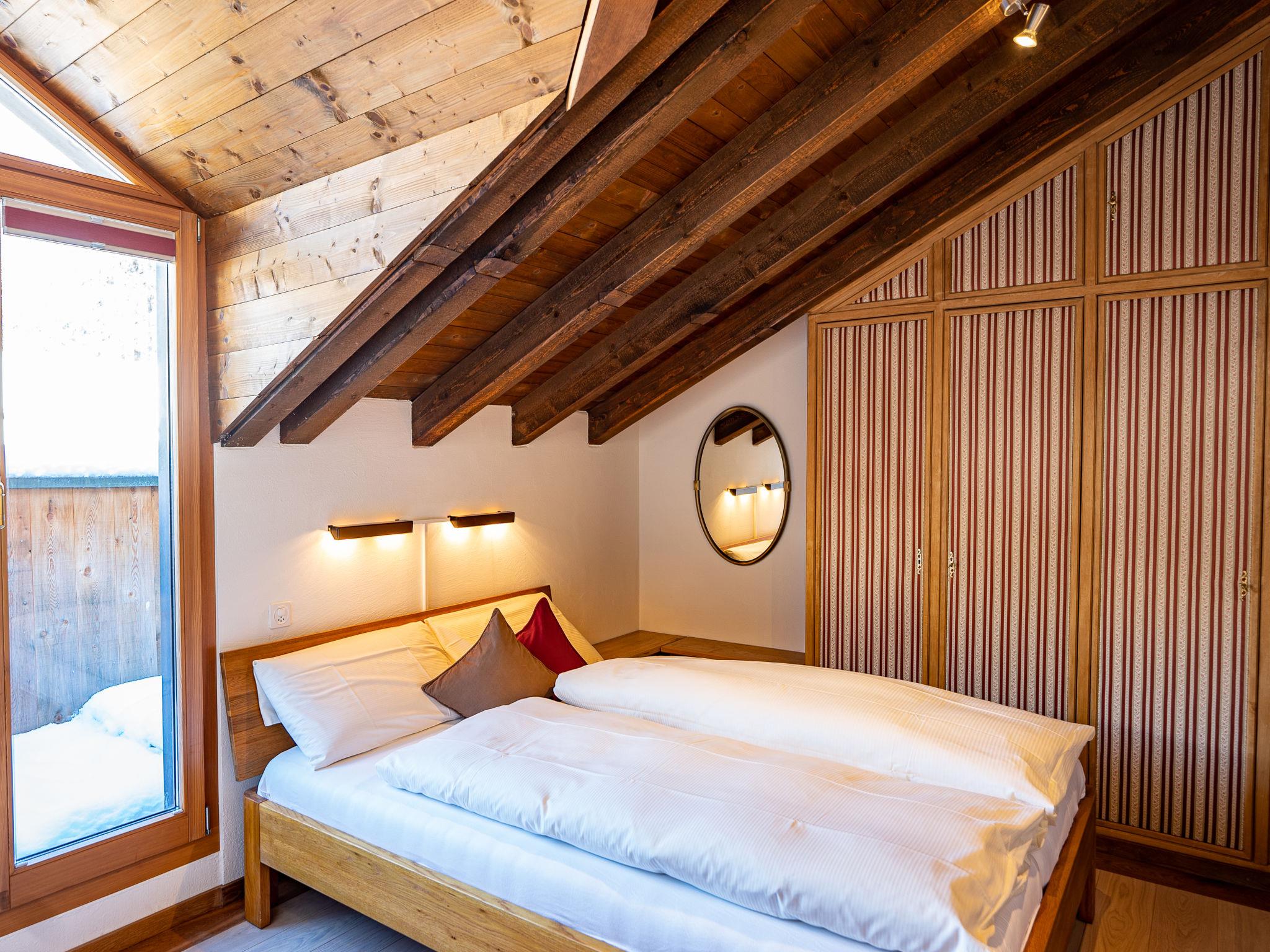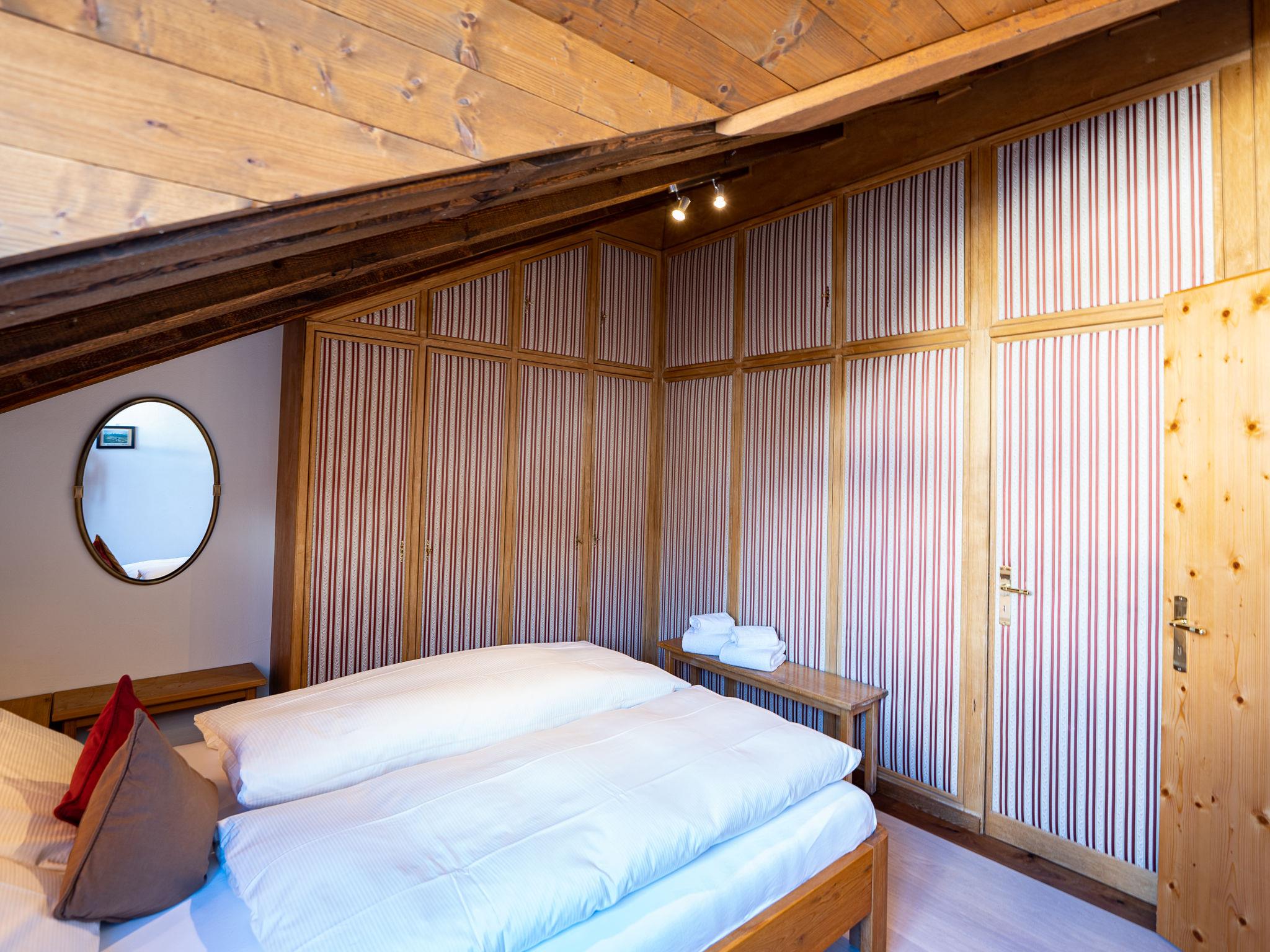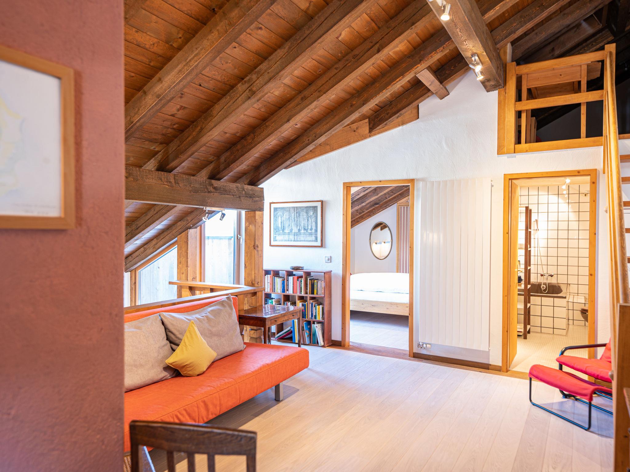 "Chesa Cantieni", 3-room apartment 85 m2 on 2 levels, north facing position. Comfortable and tasteful furnishings: living/dining room with open-hearth fireplace and TV. 1 room with 1 bed (90 cm, length 200 cm), 1 x 2 bunk beds (85 cm, length 185 cm). Open kitchen (oven, dishwasher, 4 induction hot plates, toaster, kettle, freezer, electric coffee machine, Capsules for coffee machine (Nespresso) extra, raclette grill). Shower/WC. Upper floor: 1 room with 1 double bed (2 x 80 cm, length 195 cm), bath/shower/WC. Exit to the balcony. Gallery with 1 sofabed (150 cm, length 200 cm). Small balcony. View of the resort. Facilities: hair dryer. Internet (WiFi, free). Garage space n 12 at 100 m, height 225 cm, width 260 cm. Please note: suitable for families. Non-smokers only. Instead of an enclosed bedroom, some sleeping areas are located in an open-plan area (gallery, alcove, etc.).