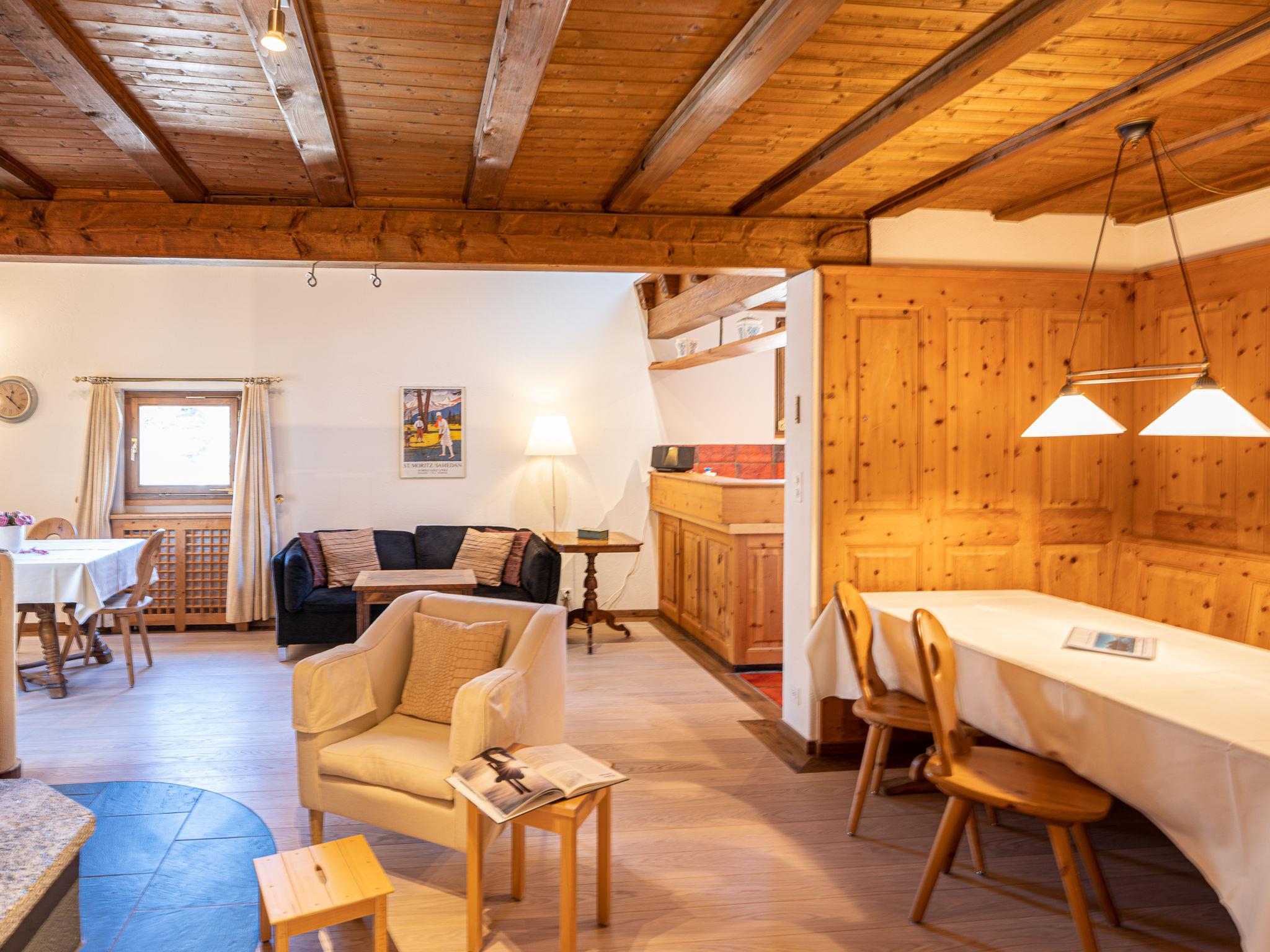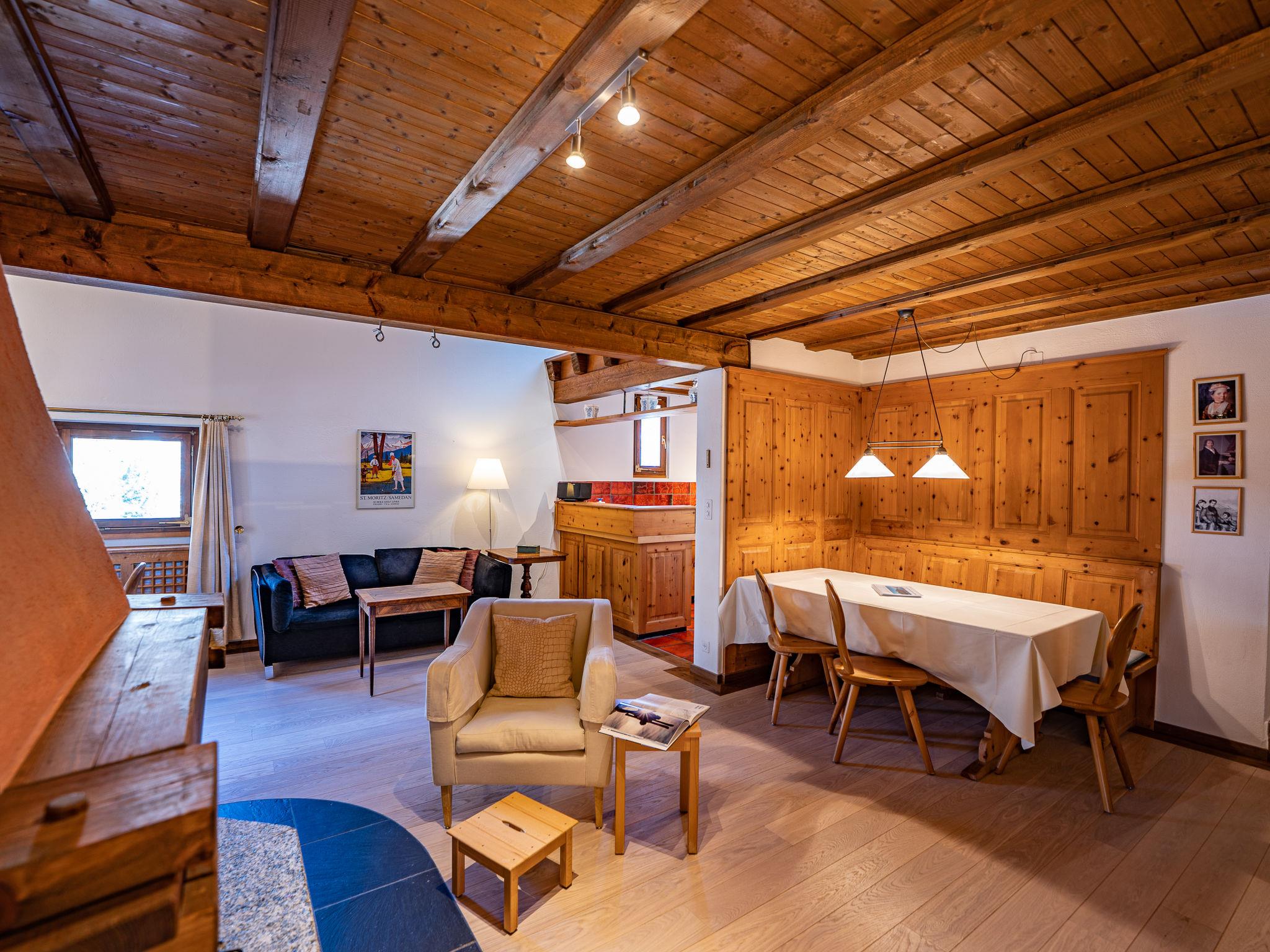 La Punt Chamues-ch 14 km from St. Moritz: The house is right next to the village church, whose bells ring every hour. Apartment house "Chesa Cantieni". On the outskirts, in a sunny position, 14 km from the lake. In the house: storage room for skis, central heating system, washing machine, tumble dryer (for shared use). Communal covered parking at 150 m. Shop 950 m, grocery 950 m, restaurant 400 m, bakery 950 m, café 400 m, bicycle rental 550 m, bus stop "Chamues-ch, plaz" 120 m, railway station "La Punt-Chamues-ch" 1.2 km, indoor swimming pool 15 km, lake St. Moritzer See 14 km. Golf course (18 hole) 5 km, surf school 20 km, indoor tennis centre 16 km, minigolf 16 km, riding stable 1.2 km, walking paths from the house 400 m, cycle lane, cable car 11 km, ski lift 6 km, ski rental 550 m, ski school 6 km, children's ski school 600 m, sled run 6 km, cross country ski track 400 m, ice rink 650 m, children's playground 1.2 km. Nearby attractions: Caferama Badilatti in Zuoz 5 km, Nationalparkzentrum in Zernez 21 km. Well-known ski regions can easily be reached: Zuoz Familienskigebiet 6 km, Corviglia - Piz Nair 15 km, Diavolezza - Lagalb 25 km. Well-known lakes can easily be reached: St. Moritzer See 14 km, Silvaplaner See 20 km, Silser See 25 km. Hiking paths: Albula Pass - SAC Es-cha Hütte, Schweizer Nationalpark / Val Trupchun, Muottas Muragl. Please note: no lift.