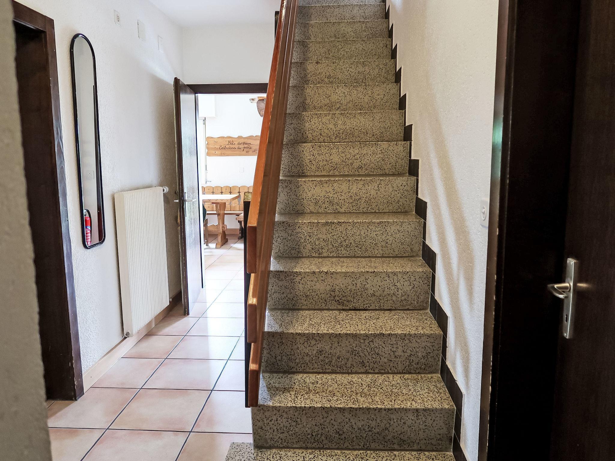 "Chalet L'Etape", 6-room chalet on 3 levels. Practical and comfortable furnishings: living/dining room with cable TV. Exit to the garden. Open kitchen (oven, dishwasher, 4 ceramic glass hob hotplates, toaster, kettle, microwave, electric coffee machine, Capsules for coffee machine (Saeco), raclette grill, fondue Set (cheese)). 2 showers, 2 sep. WC's. Upper floor: 1 room with 2 beds (90 cm, length 200 cm), hand-basin. Exit to the balcony. 1 room with 2 beds (90 cm, length 200 cm), hand-basin. 2 rooms, each room with 2 beds (90 cm, length 200 cm), hand-basin. Bath/WC. Top floor: 1 open room with sloping ceilings with 2 beds (90 cm, length 200 cm). 1 room with 9 beds. Balcony, large garden. Beautiful view of the mountains and the countryside. Facilities: Internet (WiFi, free). Parking (6 cars) at the house. Please note: non-smokers only. Maximum 1 pet/ dog allowed.