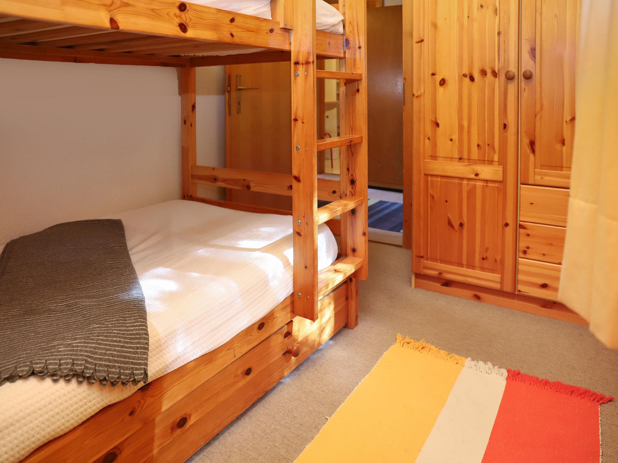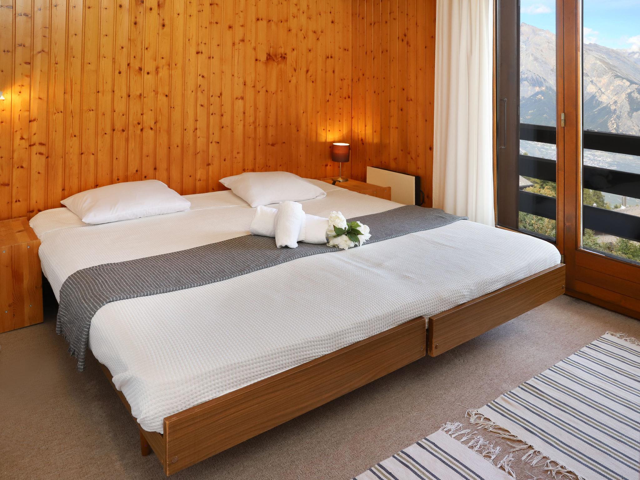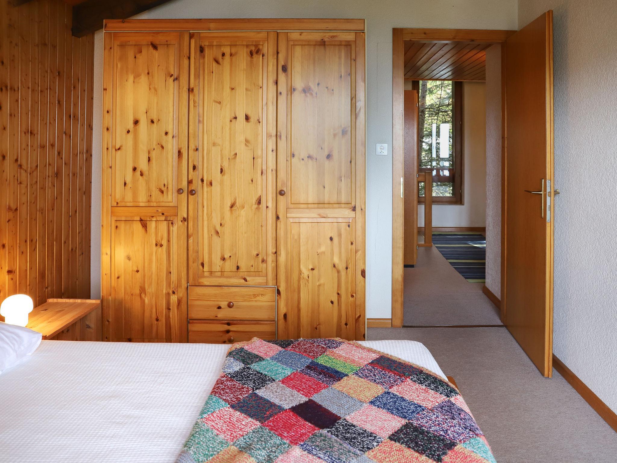 6-room chalet 90 m2 on 2 levels. Comfortable and cosy furnishings: open living room with open-hearth fireplace, satellite TV and international TV channels. Open dining room. Exit to the terrace. Open kitchen (oven, dishwasher, 4 ceramic glass hob hotplates, microwave, freezer, electric coffee machine, raclette grill, fondue Set (cheese)). Shower/WC. Upper floor: 1 room with 2 beds. Exit to the balcony. 1 small room with 1 x 2 bunk beds. 1 room with 1 x 2 bunk beds. 1 room with 1 french bed (140 cm). Exit to the balcony. Shower/WC. Balcony, east facing position, large patio. Terrace furniture, barbecue (portable). Marvellous panoramic view of the mountains and the countryside. Facilities: Internet (WiFi, free). Parking at the house. Please note: non-smokers only.