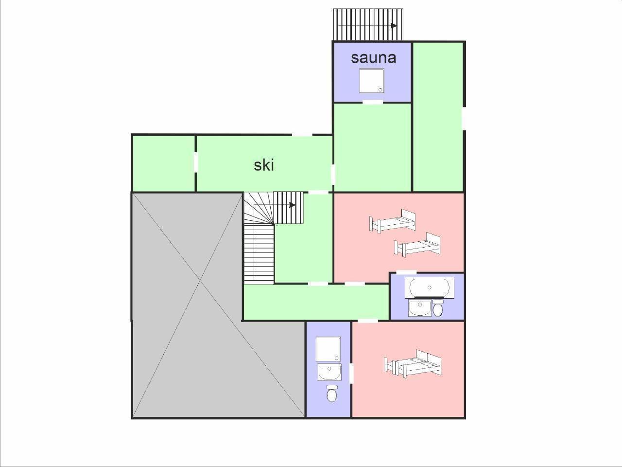Ground floor: On this floor you will find the sauna with shower and two further bedrooms with en-suite bathrooms: one bedroom with a double bed and one bedroom with two single beds. One bedroom with a double bed and one bedroom with two single beds. There is a ski room.
