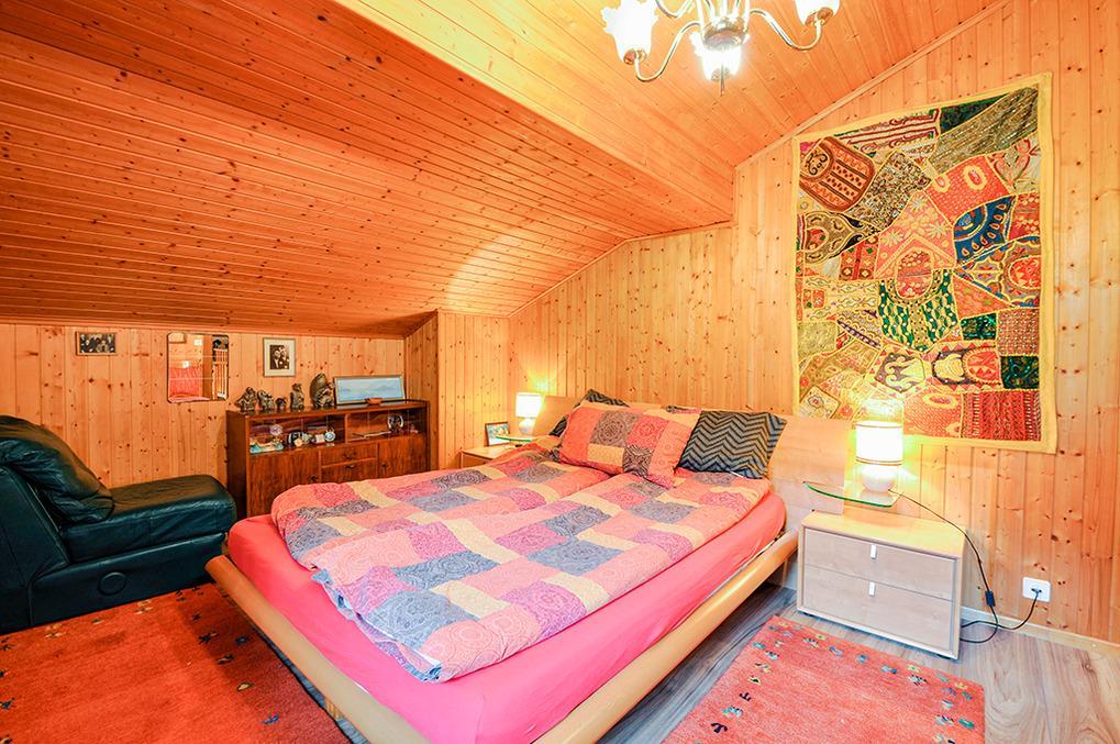 Haus: Schönes Chalet mit Kamin. 4-Zimmer-Chalet mit 120 qm Wohnfläche über 2 Etagen. Gemütliches Ambiente durch Holzvertäfelung in fast allen Räumen. Internet kostenlos über W-Lan. Waschmaschine. Öl-Zentralheizung. Warmwasser über 200 l E-Boiler. Im Tiefparterre: Spielzimmer mit Mini-Kicker, Skiraum. Balkon, Terrasse (Sitzmöbel). 2 Pkw-Stellplätze vorhanden (40 m entfernt, danach Fußweg zum Chalet).
