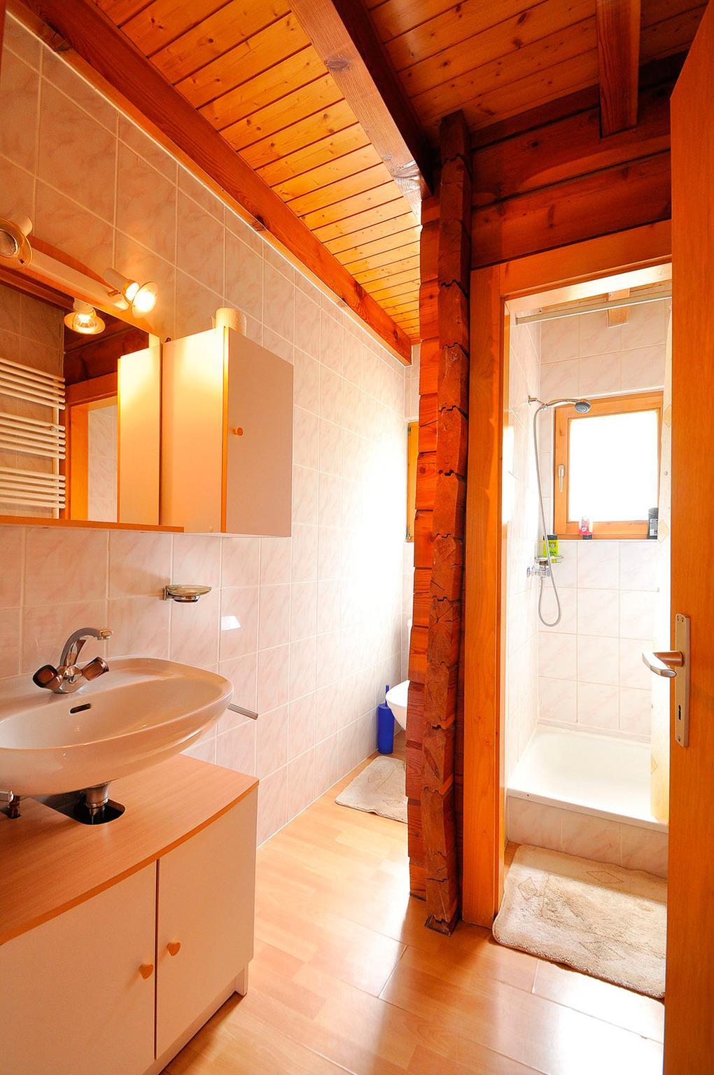 Haus: Schönes Chalet mit Kaminofen. 4-Zimmerhaus mit ca. 100 qm Wohnfläche über 2 Etagen. Rustikal-gemütliches Chalet-Ambiente durch Holzvertäfelung in allen Räumen. Waschmaschine, Trockner. E-Heizung. Warmwasser über 200 l E-Boiler. Skiraum. Balkon. Separates Studio im Tiefparterre. 2 Pkw-Stellplätze am Haus.