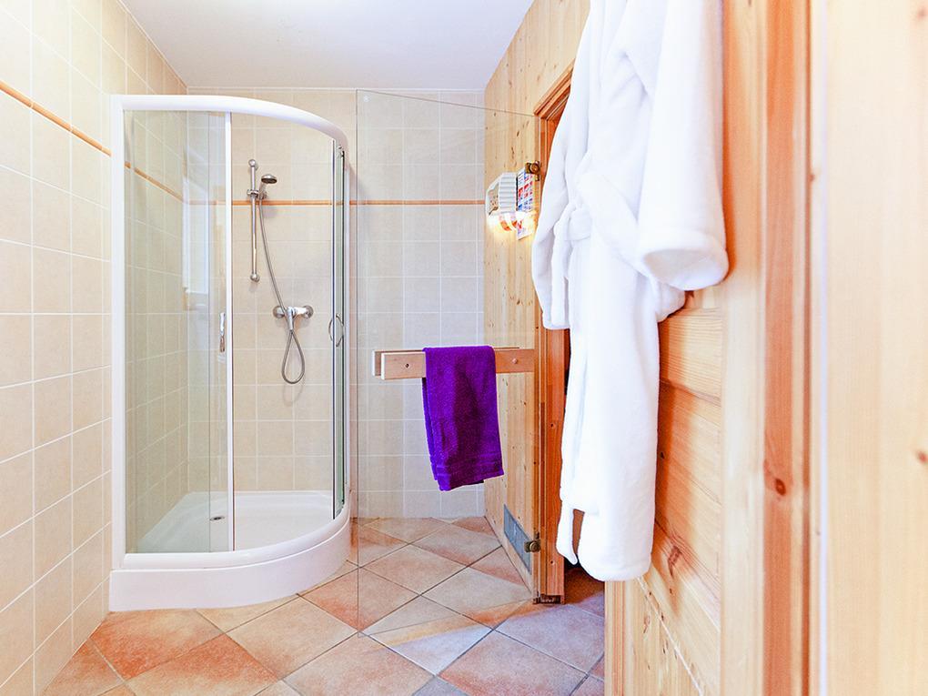 Parterre: Drei Doppelzimmer mit Bad (Du, Wb, WC). Sauna mit Dusche. Skiraum.