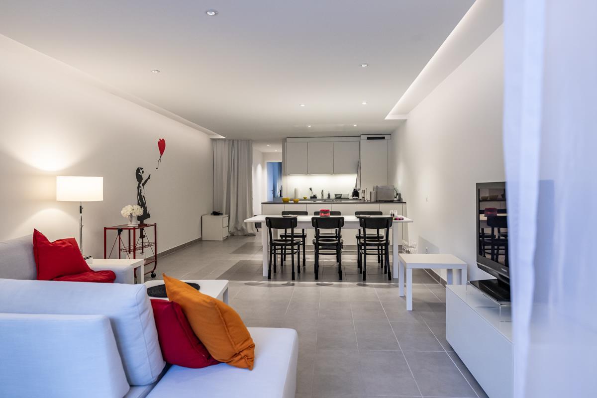 Living-dining room: large table, 6 chairs. Sofa bed. TV with Live TV, Wifi, connection for smartphone, charging station with all connections for smartphone.