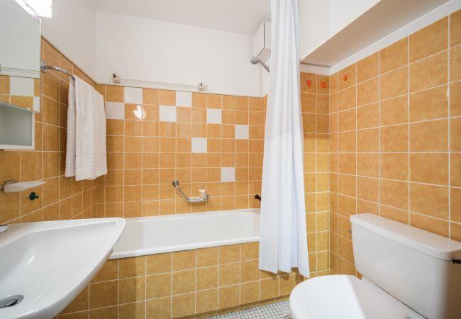 The apartment features a bedroom with a double bed and a single bed. The bathroom is equipped with a bathtub. In the fully equipped kitchen, you'll find a stove, oven, dishwasher, as well as a washing machine and dryer.