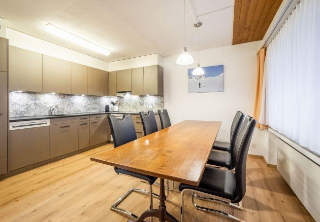 The apartment in Laax is located directly at the Laax Murschetg valley station. The Rocksresort, offering excellent shopping, restaurants, and bars, is just a five-minute walk away. The ski lifts are just a short downhill ride from the property.