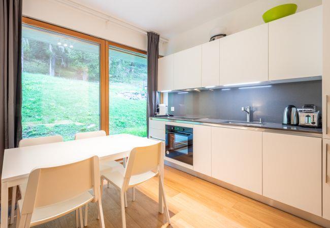 The comfortable apartment features one bedroom with a cozy double bed and an additional sleeping option on the sofa bed. The modern, open-plan kitchen is fully equipped and perfect for cooking together — with highlights such as a raclette grill, coffee machine, and dishwasher. After an exciting day on the ski slopes, you can unwind in the sauna or enjoy the fresh mountain air on the terrace overlooking the forest.