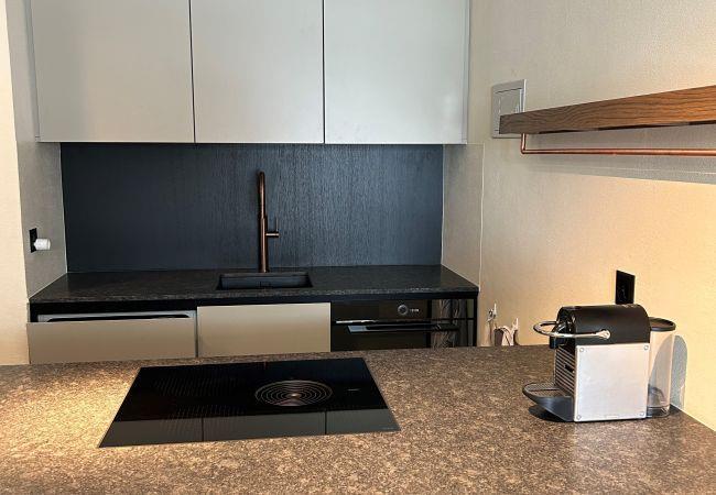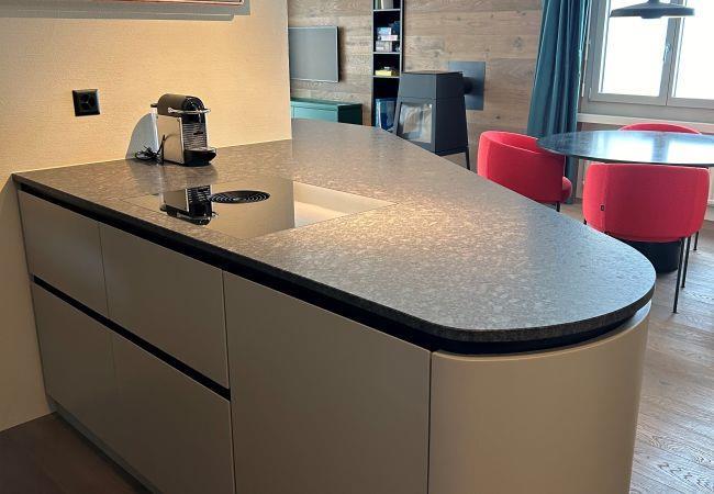 The open, modern kitchen with a cooking island is fully equipped and leaves nothing to be desired. It includes an induction cooktop, oven, dishwasher, refrigerator with freezer compartment, electric kettle, and a Nespresso coffee machine – perfect for enjoyable evenings at home.