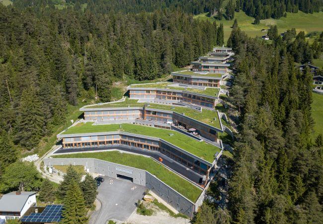 Modern 2.5-room apartment at Residenz Cuolm Liung in Laax Murschetg. The apartment is located in the immediate vicinity of the ski slope and impresses with its quiet yet central location - ideal for starting the day directly on skis or while hiking. The bedroom is equipped with a comfortable queen-size bed, and the living area offers a sofa bed for additional overnight accommodation. The open, fully equipped kitchen is directly connected to the bright living and dining area. The apartment has a bathroom with a shower.