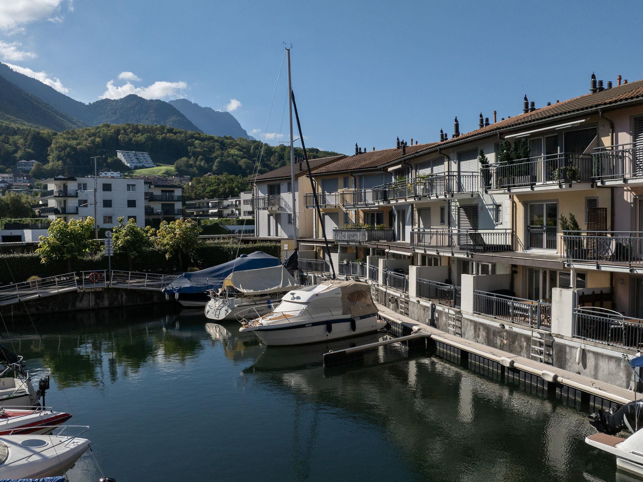 Large resort "Residenz Marina". On the outskirts, 300 m from the centre of Le Bouveret, in a quiet, sunny position, 200 m from the lake, 50 m from the canal. In the house: central heating system. Shop, grocery 800 m, restaurant, bakery 500 m, bicycle rental 190 m, bus stop "Bouveret village" 1.2 km, railway station "Le Bouveret" 300 m, pebble beach 200 m, outdoor swimming pool 300 m, indoor swimming pool 7.2 km, thermal baths 30 km, public bathing area 300 m, bathing lake "Léman" 300 m. Sports harbour 200 m, golf course (18 hole) 15 km, surf school 200 m, tennis, minigolf 12 km, walking paths from the house 300 m, mountain railway 15 km, slopes 18 km, ski school 18 km, children's ski school 35 km, sled run 29 km, cross country ski track 35 km, ice rink 18 km. Nearby attractions: Parc Aventure 17 km, Château Chillon / Fort de Chillon, Swiss Vapeur Parc 100 m, Aqua Parc 500 m. Well-known ski regions can easily be reached: Les Portes du Soleil 18 km, Villars 35 km, Leysin 31 km. Well-known lakes can easily be reached: Lac Léman. Hiking paths: Portes du Soleil. The keys‘ handover takes place by the agency Interhome in Bouveret. Neighbourhood highly sensitive to noise. Quietness and good behaviour expected.