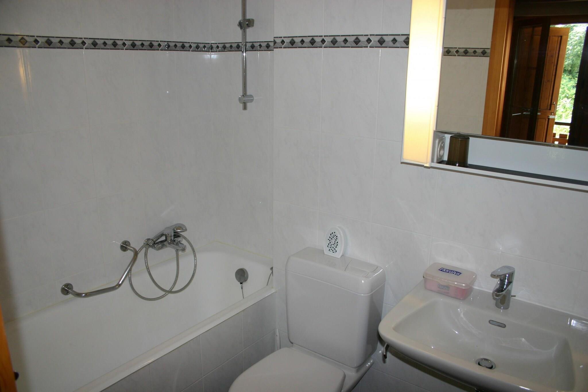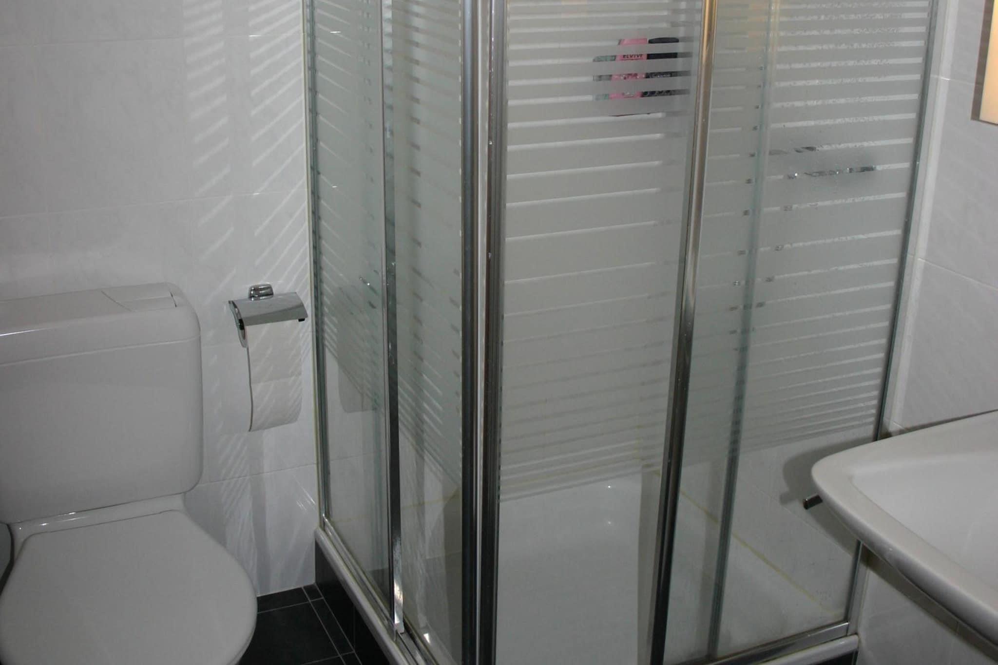 On the 1st floor: (Living room(double sofa bed(140 x 200 cm), TV(satellite), dining table, fireplace, seating area, radio, heating(central)), open kitchen(electric kettle, toaster, coffee machine(filter), oven, dishwasher, fridge-freezer, dishes and cutlery(Bowls, chopsticks, plates, cups, etc.)), bedroom(single bed(90 x 200 cm), single bed(90 x 200 cm)), bedroom(single bed(90 x 200 cm), single bed(90 x 200 cm)), bedroom(bunk bed(90 x 200 cm)), bathroom(bath tub, shower, washbasin, toilet), bathroom(shower, washbasin, toilet)) ski storage, washing machine, balcony, heating(central), garden furniture, parking, swimming pool(shared with other guests), lift